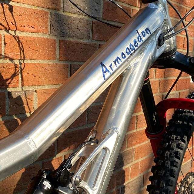 With a 57-degree head angle, the Alutech Armaggedon is around 10 degrees slacker than anything Chipps would ride, and the 81-degree seat tube angle places this frame in the same league as those CNC machined beasts from Pole.