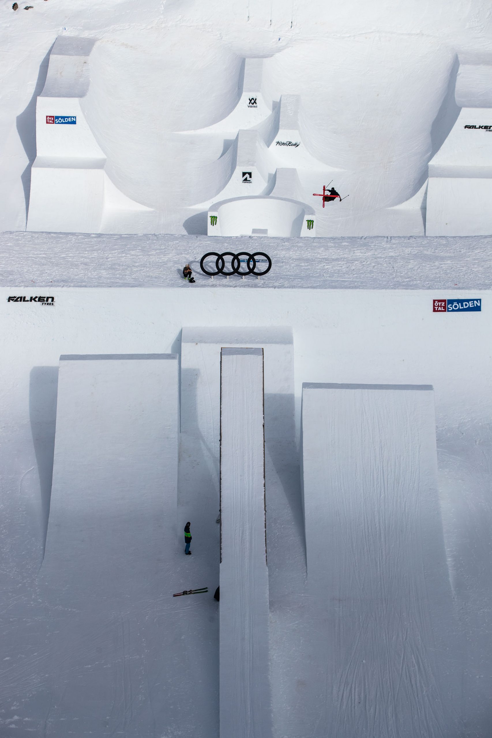 Audi Nines – which started in 2008 as a freeski only programme – gave freeskiers, snowboarders and riders the opportunity to design some giant playground to play in, and this is the result. We’re not seeing a cafe with supplies of tea and cake, or an onsite woodfired pizza van. Perhaps they could use a little help with future designs?