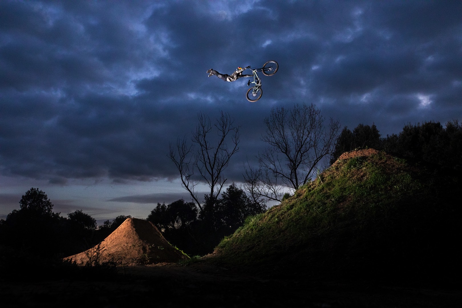 I’ve known Andreu for a few years now, but this was the first time we had the chance to properly meet as he signed with Commencal earlier this year. We went to Catalonia to shoot a welcome edit and some photos in March and after spending a day in Osor at Pure Riding Bike Park, we moved to his house, closer to Barcelona. This photo was shot in his yard at the end of the day. I asked Andreu if he could hit that jump which is at the very bottom of his line, while he was shooting some video clips at the top. The trick wasn’t hard to choose as Andreu might have some of the best superman in the game. There are usually insane sunsets there but we were not that lucky with the weather on this trip so a cloudy sky had to do the trick, which wasn’t too bad in the end.