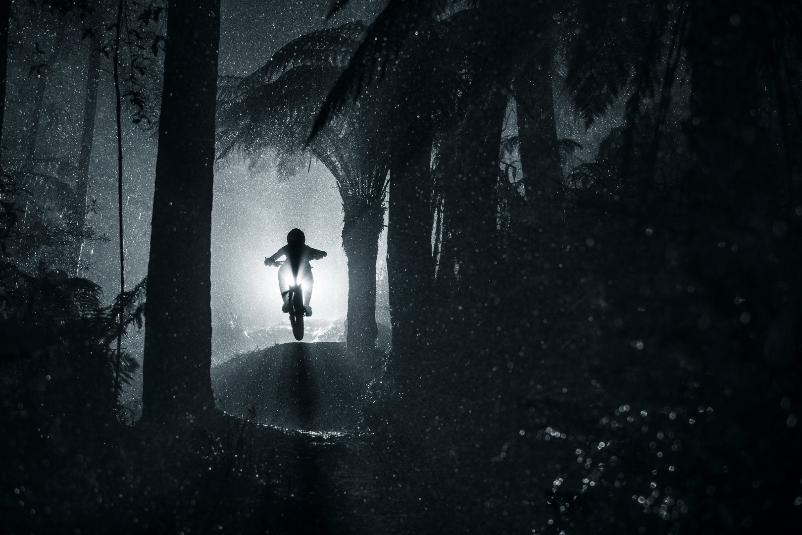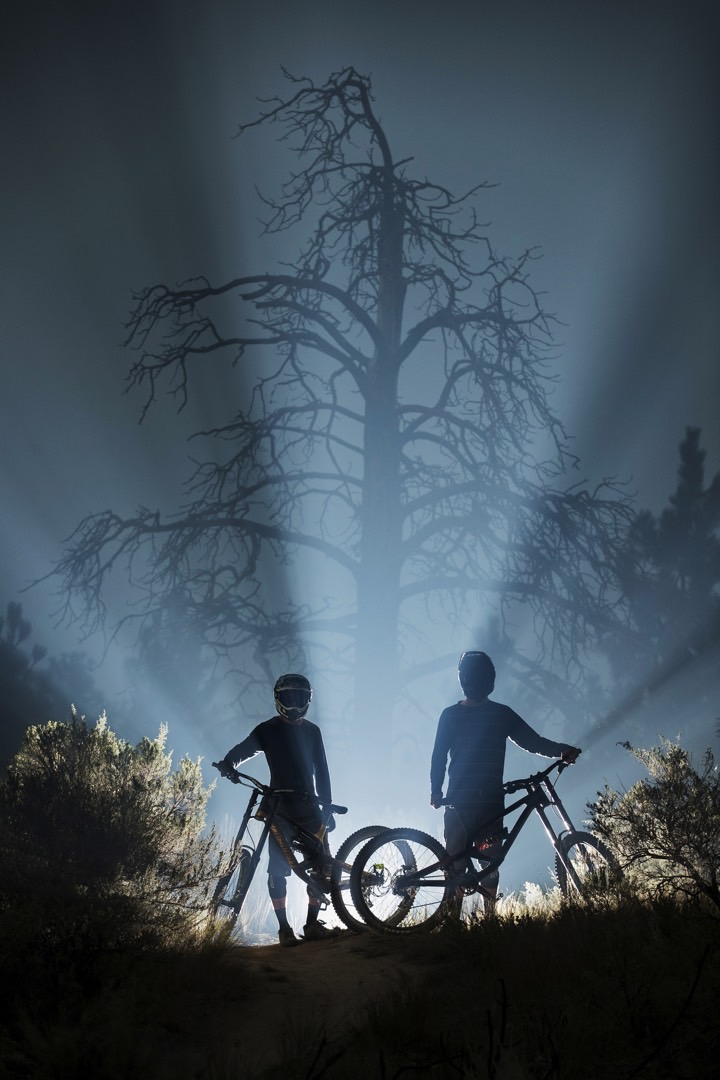 My relationship with fog and flashes is pretty strong i would say. I shot this image during a trip to Vancouver Island with Brendan Howey and Daniel Fleury as we were shooting the new Furious BC edition. At the end of the day, we decided to shoot a trail in a clear cut. The weather was so foggy we couldn’t even see 15 meters in front of us, I remember Brendan and Daniel had to remove their goggle lens’ to shoot because of the rain. Once we were done with the riding, I saw those trees, standing in the middle of nowhere so I asked Daniel to sit there for a second. I used a flash to illuminate the whole scene, as we couldn’t see much without it.