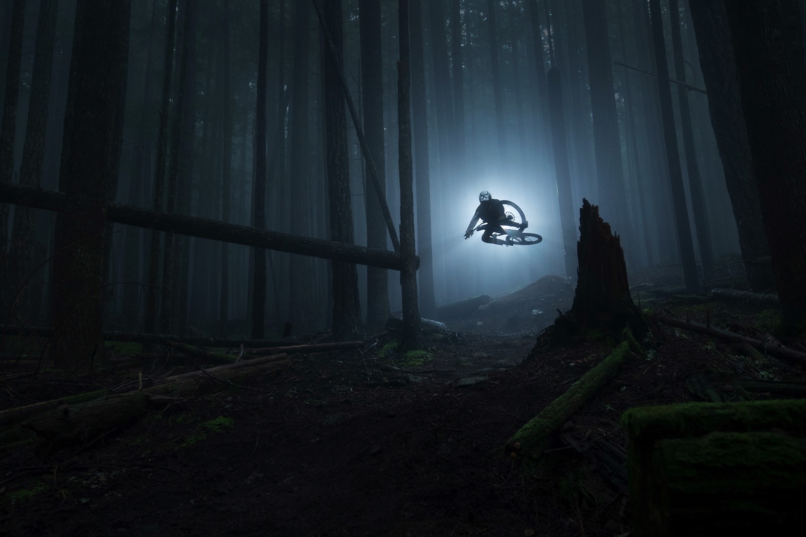 This was for sure my favorite shooting day from last year. We were lucky enough to witness an entire day of thick fog on the Canadian Sunshine Coast. It was hard to pick a single photo from this shoot but as this one scored Pinkbike Photo of the Year, I thought it deserved its place here. We went down this trail during the whole day while shooting and this was pretty much the last section because the light was fading away. It was getting too dark to film so I tried to shoot this shark fin with flashes and we came up with this result after a few tries.