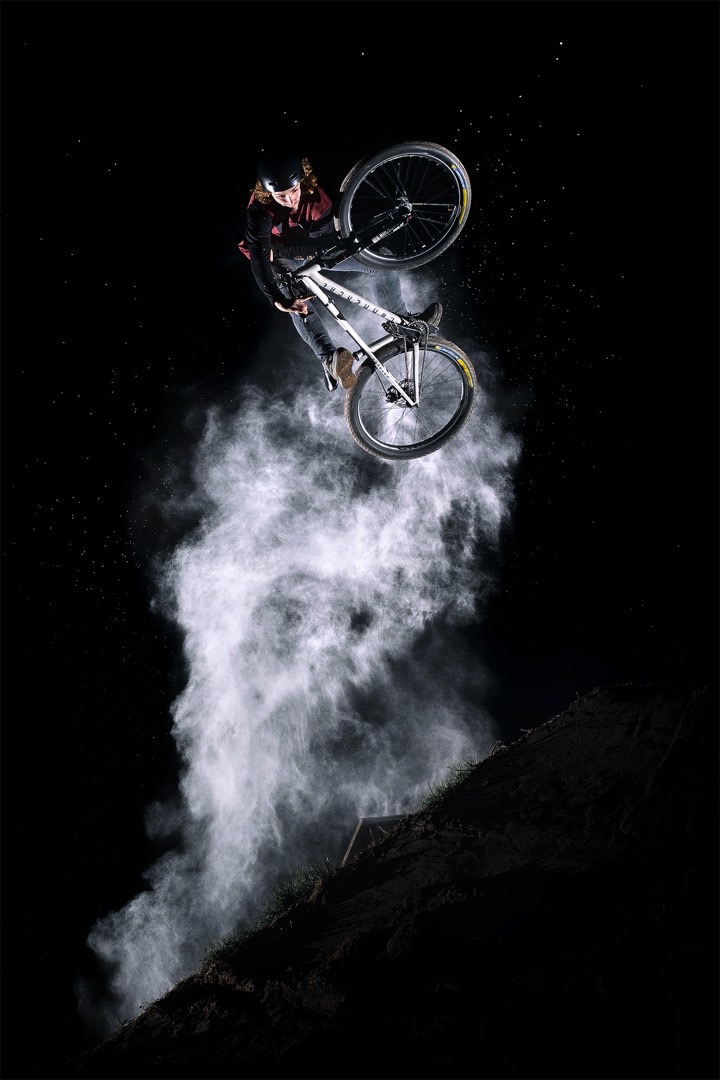 We were lucky enough to have a few friends helping us with the fire that night and adjusting the smoke just as we needed. The hardest job was Jeremy‘s as he had to ride the trail almost blind. Riding bikes at night is so scary and I can‘t thank the athletes enough when they are in these kinds of conditions. After a few attempts, we got this one, just as I imagined it at the very beginning, and it was a great feeling to finally see the image I had in my head for months, displayed on the back of my camera.