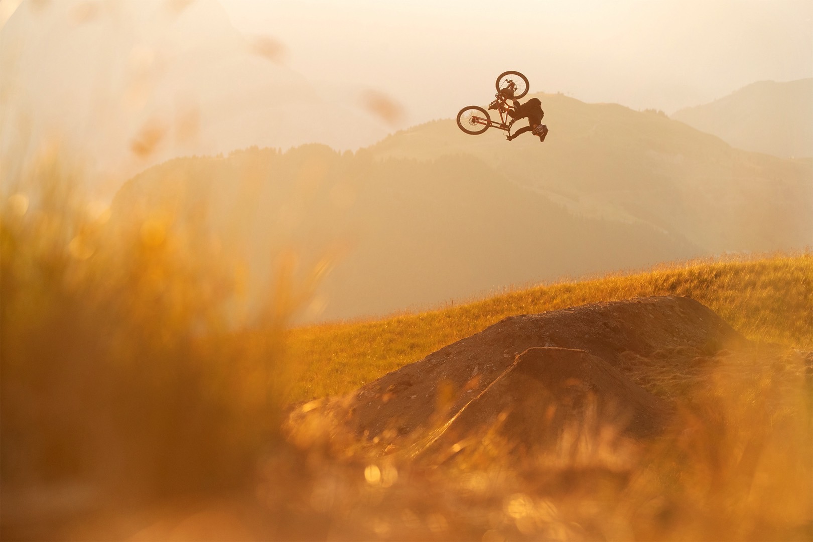 We worked on this project for 2 years. I’ve dreamt of a big hip jump in the mountains, with perfect evening light. This is pretty much the dream set up for any mountain bike photographer, but it’s definitely not easy to make it happen. Thanks to Les 2 Alpes, we were able to dig a line on a perfectly exposed field up in the mountains. Due to some technical and logistic issues, William and two friends only had 4 days to dig the whole line and they didn’t have time to make the hip as big as we wanted but in the end, it wasn’t too bad anyway. A few days later, we went up there with William and the other guys from the media team for a week of shooting. A dream line, perfect light and William Robert, everything was in place to produce beautiful content. We had a whole line to shoot and to ride but we couldn’t get enough of shooting this hip, which was obviously the highlight of the build.