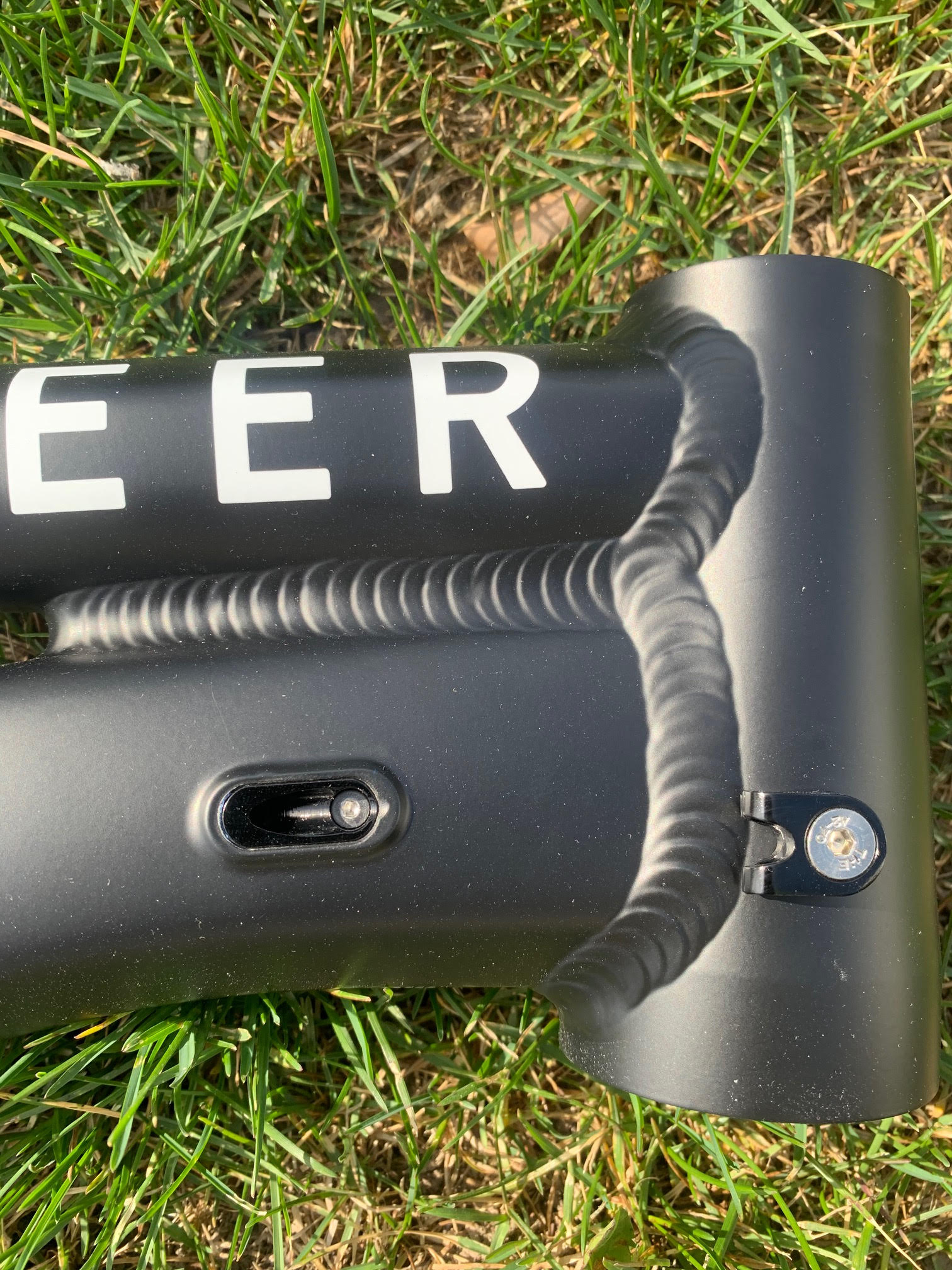 Funn offers the Equalizer in plenty of bright colours, and there are options for either 31.8mm or 35mm handlebars. This version is a 31.8 x 35mm, but there are also 42mm and 50mm long options, or at least there will be once they go on sale.