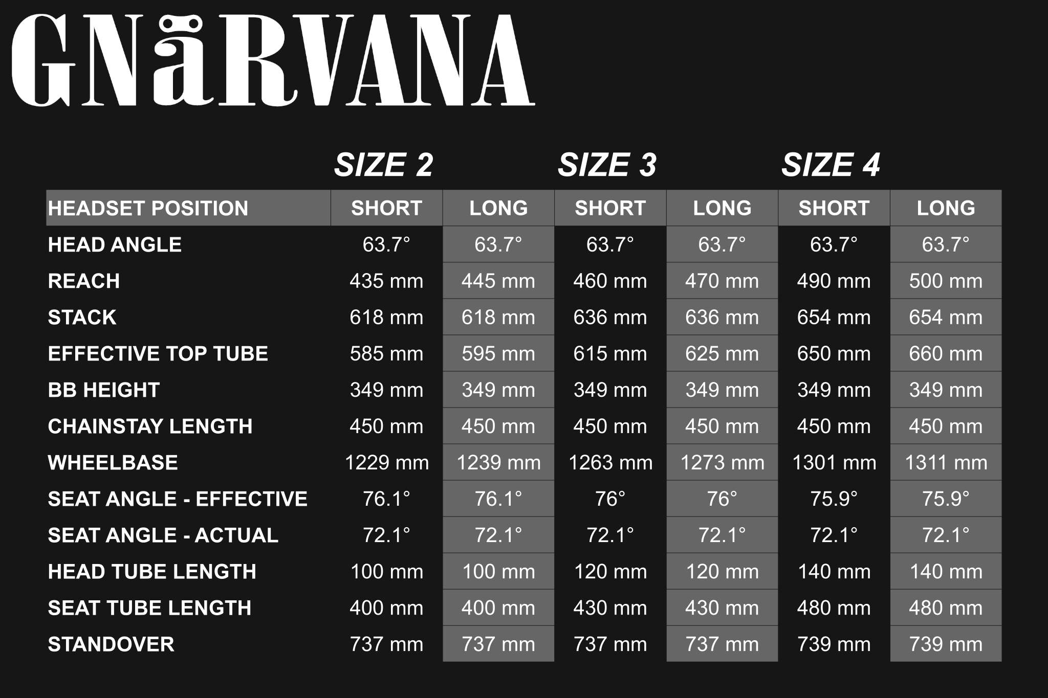 The Gnarvana brings 160mm rear travel to the 29in wheel party, and can be paired with up to a 170mm fork. The chainstay length is 450mm, you get a 63.7 degree head tube angle, and it comes in three sizes, each with a ‘short’ or ‘long’ option. The long or short options are achieved using the GeoAdjust headset, which gives 10mm extra (or less) length.