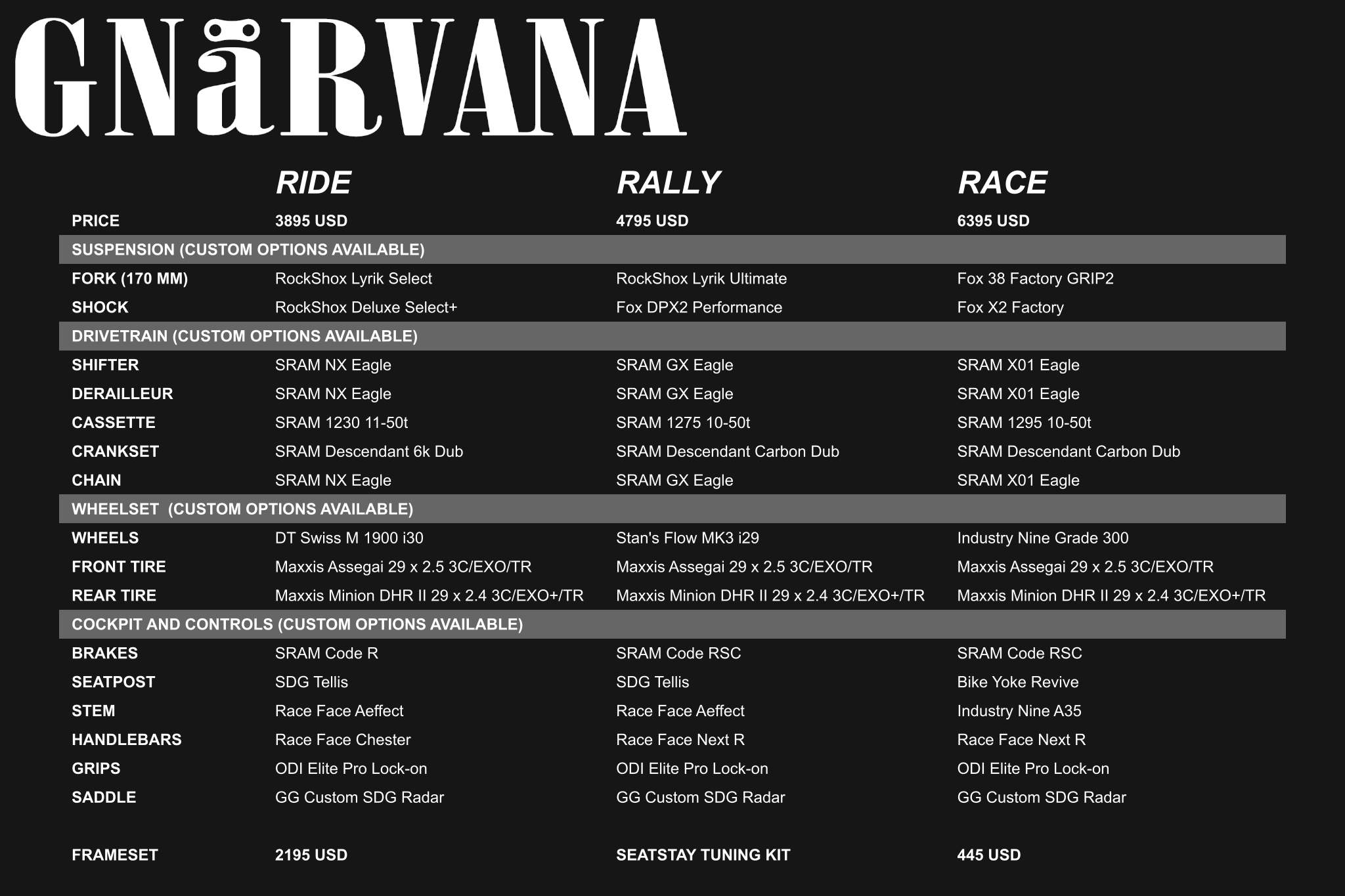 - Rider Direct (available in USA, Canada, Europe, United Kingdom, Australia, and New Zealand) – visit RideGG.com, configure your Gnarvana, and order it.