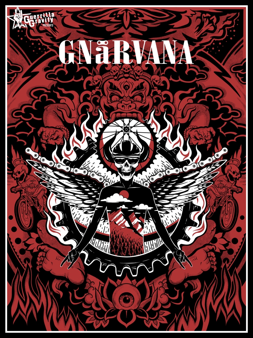 If you’re one of the first 100 riders to scoop up a Gnarvana, you will receive a limited edition Gnarvana poster, illustrated and signed by Travis Gillan, the local Colorado artist. Each poster is screen printed by hand at Pine Printing so you can pair your handmade bike with a limited edition handmade poster.