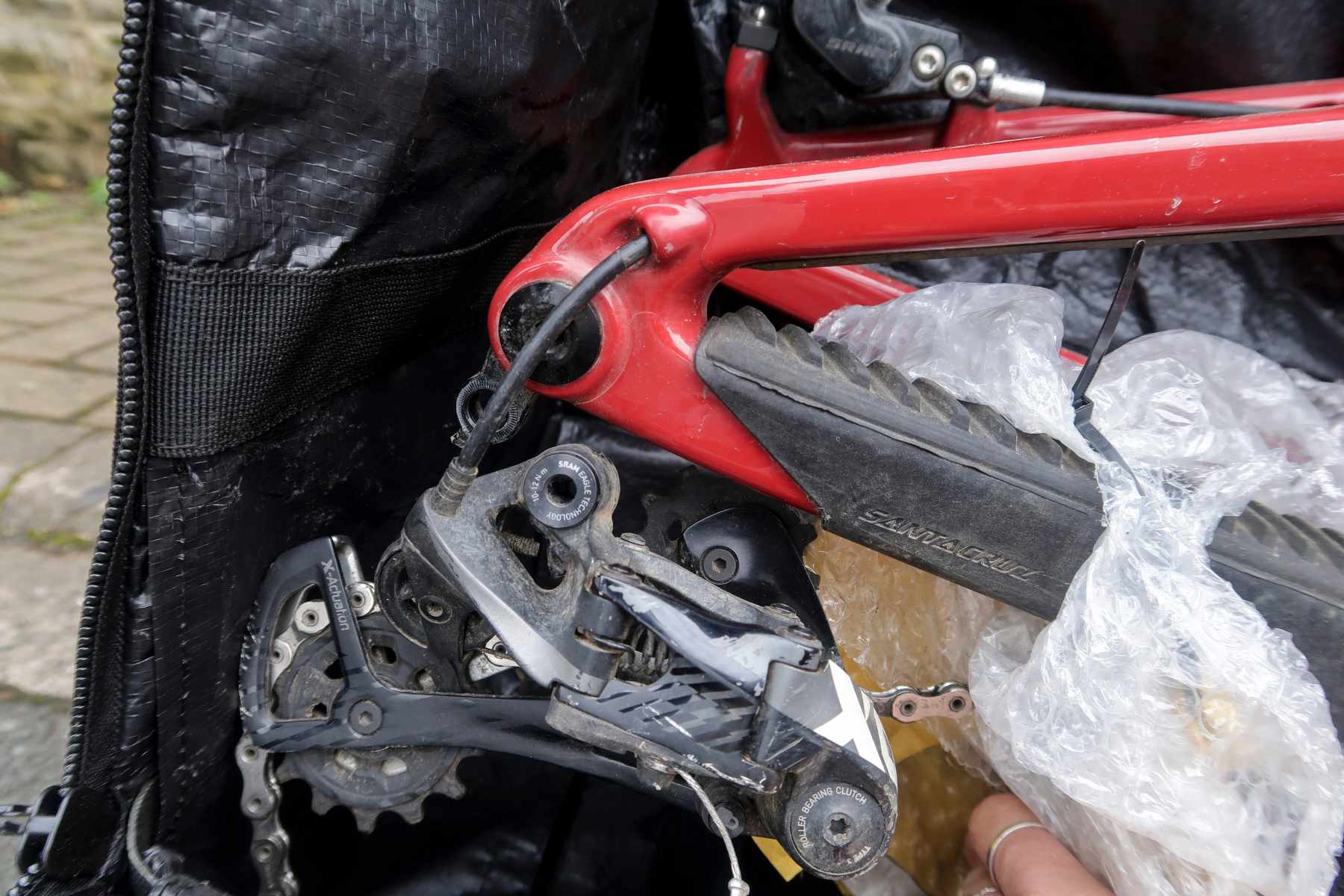 Some airports have asked me to drop the air out of the tyres, but I like the added protection it offers the rim so I tend to halve the pressure when packing the bike, so they appear very soft to the staff but there’s still something in there.
