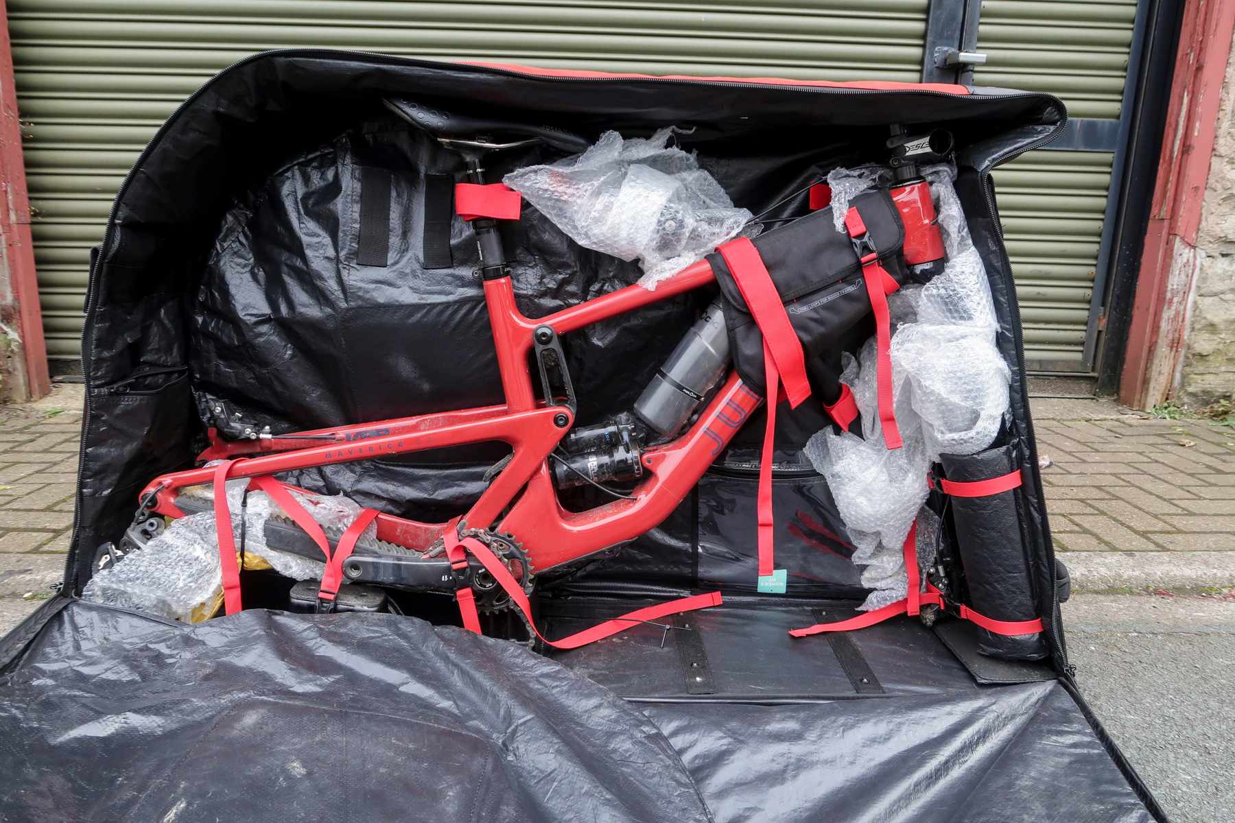 This Evoc Bike Travel bag does make packing a fairly pack-by-numbers affair, with lots of straps and protection included. However, it’s fairly snug lengthwise, so riders of XL modern geometry bikes may find themselves doing a fair amount of dismantling. It’s certainly easier to drag around than a cardboard bike box, and looks a lot better too. If you’re planning on a few trips, it squashes up nicely for stashing in your loft in between adventures to far flung places, and once you’ve used it a few times you’ll get the knack of fitting your own particular bike into it.