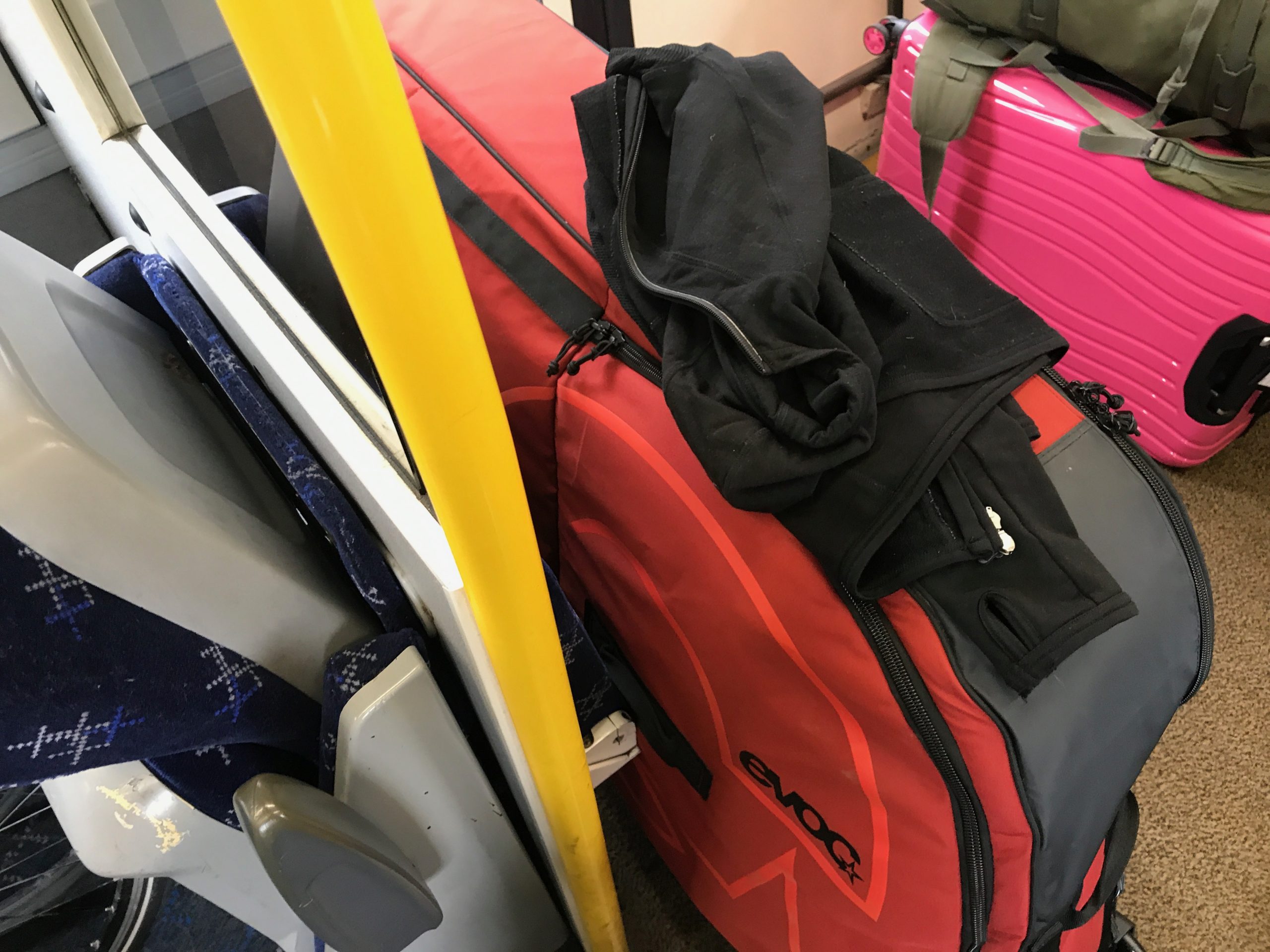 Pulling the bike bag around train stations was a bit of a sweat. Away from the polished floor surfaces of an airport, the bag is a little less stable, and it often felt like there wasn’t a handle quite where I wanted it in order to pull or lift it. The main padded towing handle is low down on the bag, so that you walk with the bag stood tall behind you – this is fine indoors, but not so much if you’re crossing kerbs or other bumps along the street. The handle at the top of the bag doesn’t give you a lot of ground clearance, and quickly gets vary painful on the hands, as do the side handles, if you’d having to lift the bag for any length of time (like over a platform bridge for example). I’d like to see the extra handles be a little easier on the hands, and an extra handle on the top would be handy for manoeuvring it into upright into the back of a car. But all that said, it’s a lot easier to deal with that my usual cardboard box!