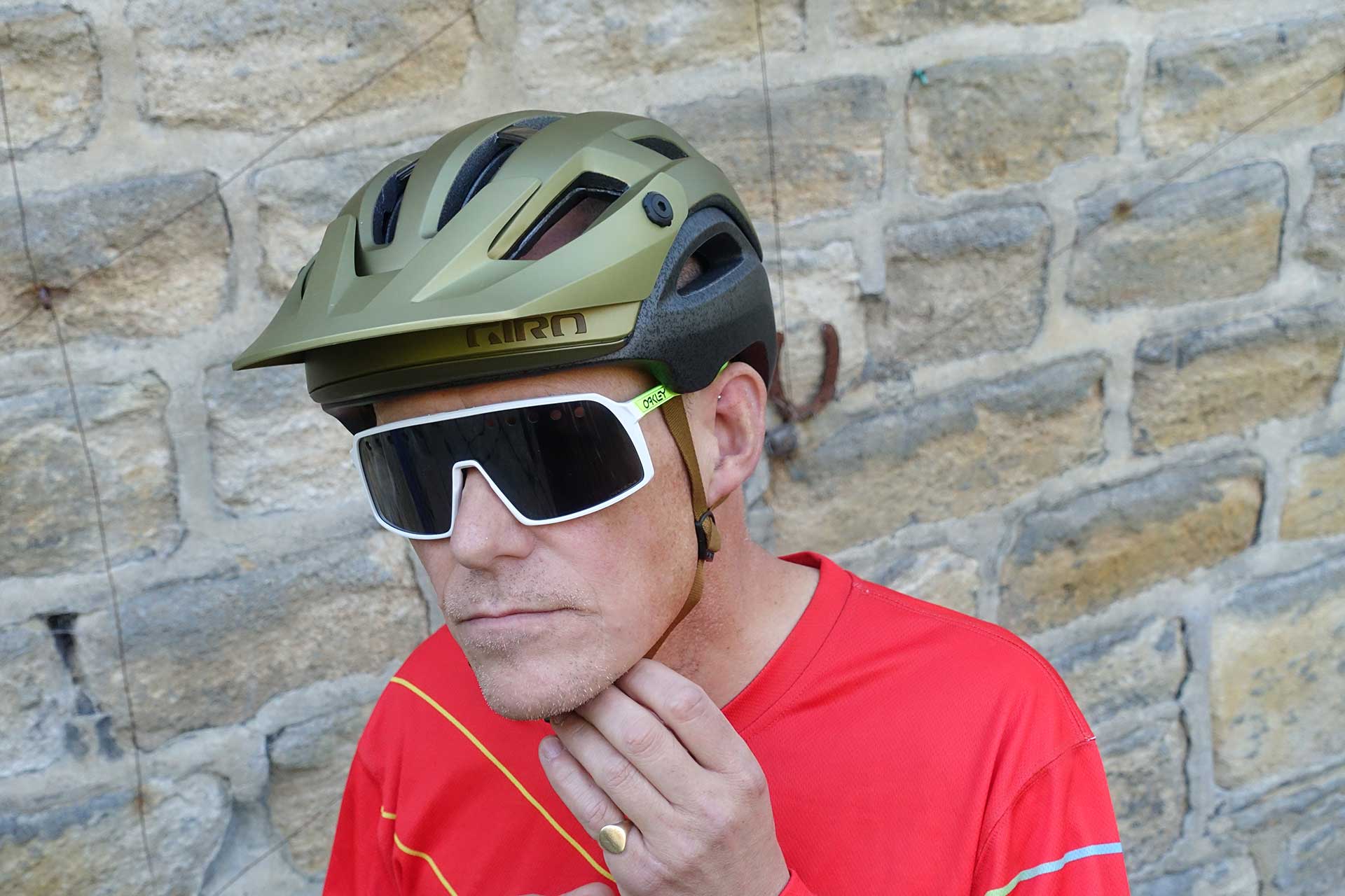 Glasses fit is always important on a mountain bike helmet and Giro has made an effort to fit glasses (and goggles too). Although the brow and temples are low on the head for protection, the insides of the temples are thinned out to allow most sport glasses arms to fit under. This was true in the case of most glasses I tried – like the Oakley Sutros in the photos, Smith Pivlock Arenas and more Rayban-style glasses like Oakley Gascans and Frogskins. Unfortunately my favourite Oakley Radarlock shades were too wide to fit, so make sure you take your favourite glasses along when shopping.