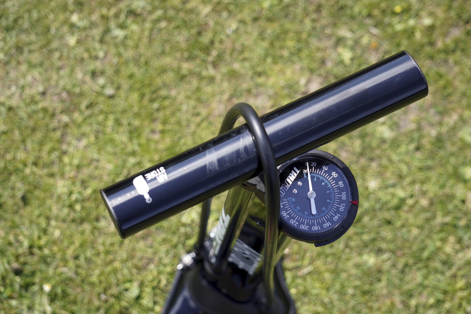 This heavy duty track pump can hold 260psi for days on end in the secondary cylinder, perfect for race days. It has a steel handle, aluminium shaft and rubber foot for grip.