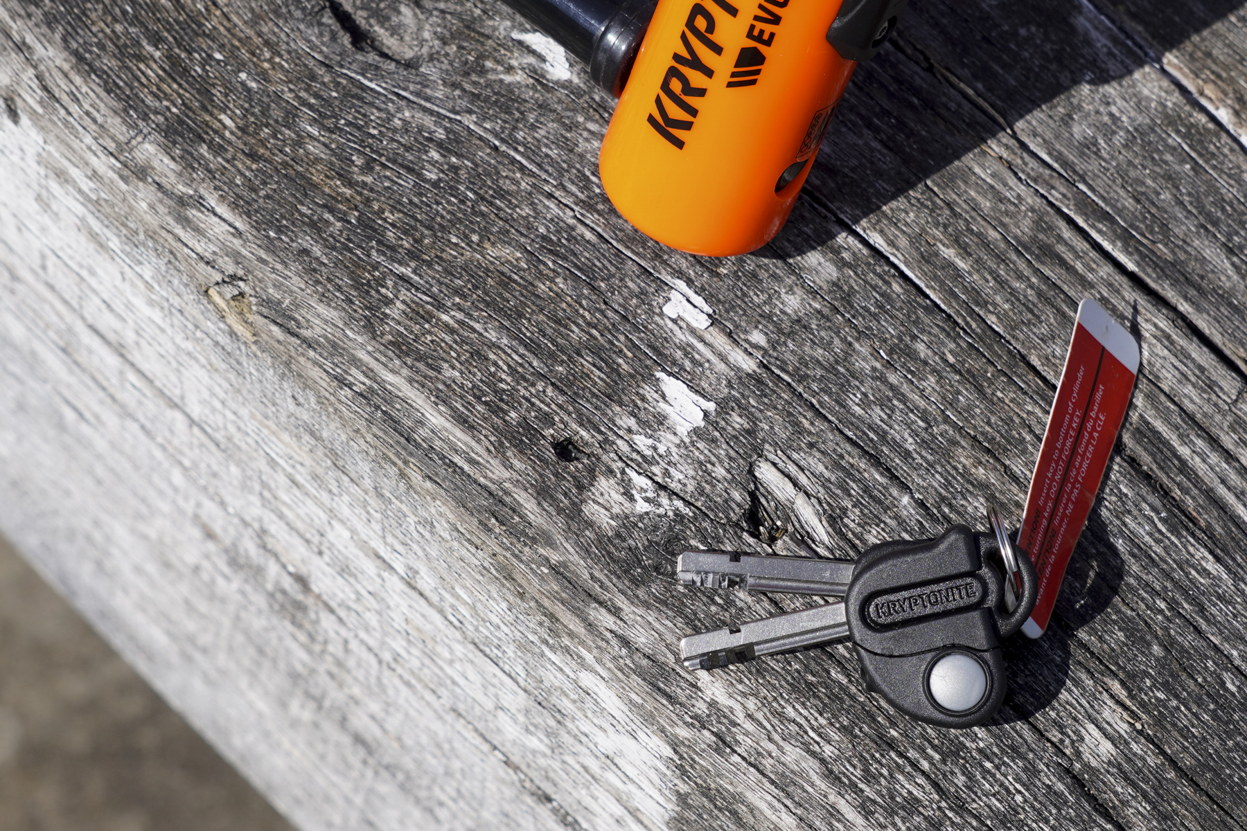 A 14mm hardened, extra long steel D. Mmm. It features reinforced internal housing, reinforced sleeve and cylinder, and it comes with three keys – one of which has an LED light for ease of use at night. It is not a remote control, as Amanda sadly discovered.