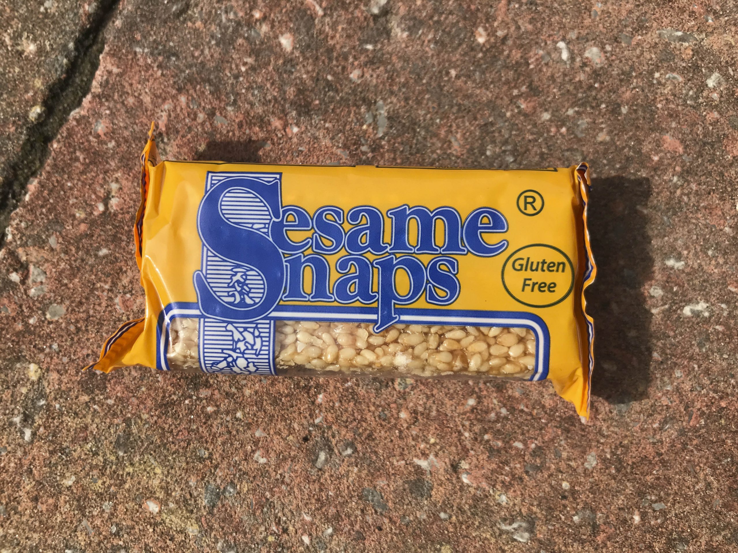 Now for the cheapest, smallest, crunchiest vegan snack of them all. Sesame Snaps are only 30g and are basically just sesame seeds held together with sugar. 49% seeds, 51% sugar to be precise.