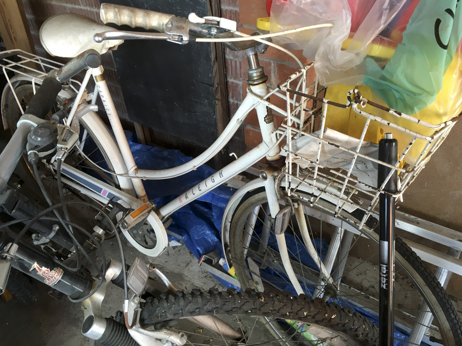 This 1989 Raleigh Caprice is what you might call a shed find. Although, it wasn’t lost, and it was in a leaky garage. It belonged to my mum and for as far back as I can remember it has stood still, on its little kick stand, with a rusty SwingBall leaning against it and a pile of gardening equipment in the basket.
