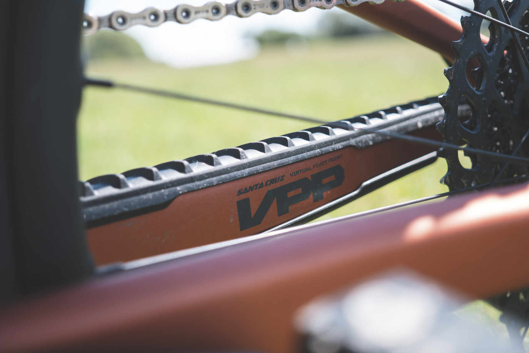 The first thing you’ll notice on the new Juliana Furtado is the blindingly obvious change in rear suspension. The Virtual Pivot Point (VPP) has been given a shakeup and is now a lower system, which differs from the Furtado’s predecessors and is a lot more common in the MTB world these days. Placing the VPP at a lower point in the frame allows for a lower centre of gravity which gives the rider a better tuned and controlled experience. This also means that there is vastly improved small bump compliance which leads to a more predictable feel. Additionally, the tried and tested lower linkage encourages a greater weight transfer when braking harshly which proves to keep the bike more level and should greatly reduce your (albeit great) impression of being shot out of a cannon.