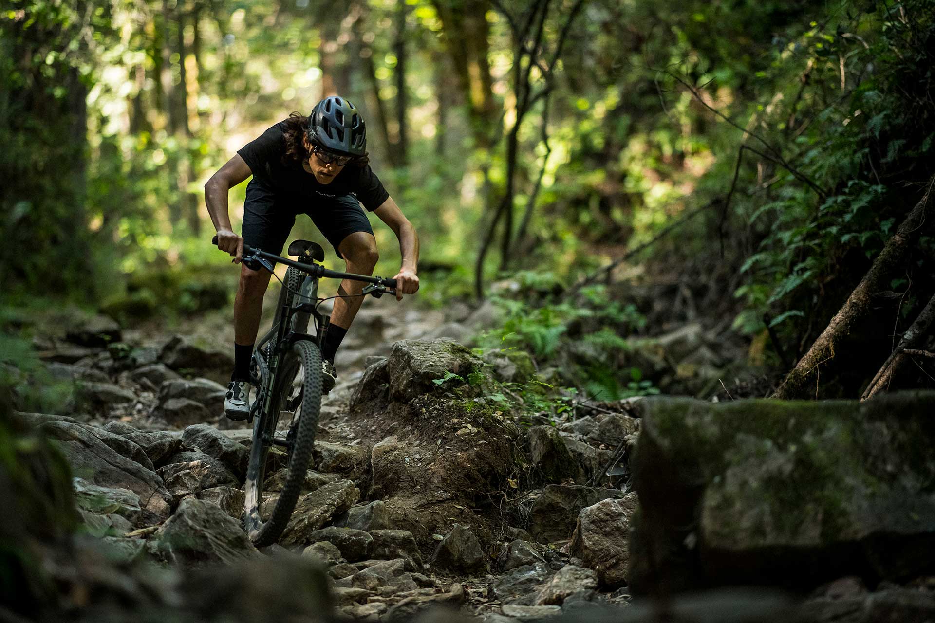 The EVO is meant for fast-trail riding (though obviously it can be raced if the desire takes hold) but the suspension is tweaked for better pedalling efficiency, the travel is upped just enough to keep you out of trouble and there’s a sweet, sweet dropper post.