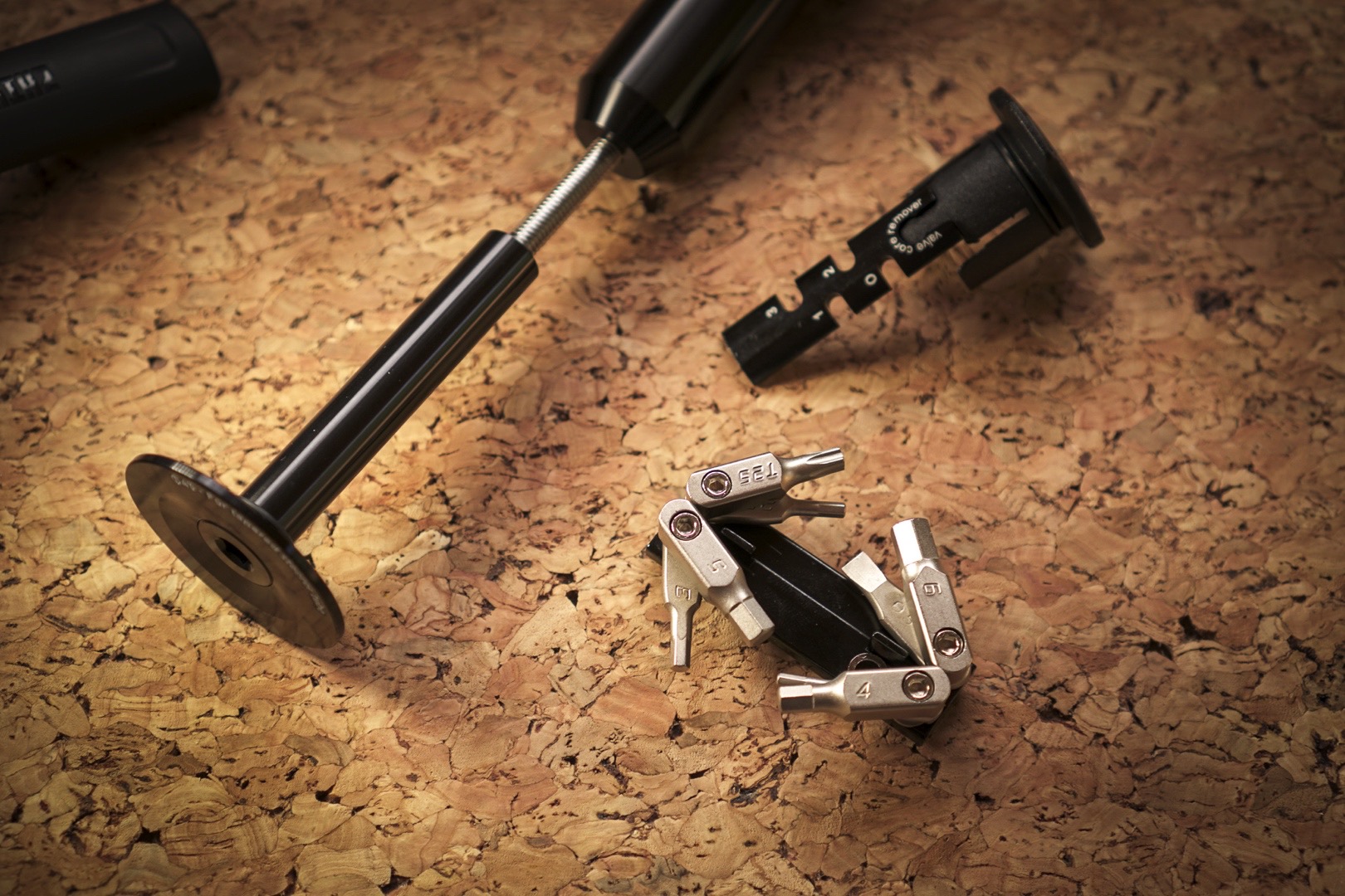 We’ve already reviewed the STASH from Granite Designs but it’s such a neat little tool that we have another in. The STASH isn’t just a handy tool, but also a great alternative to the star fangled nut usually used for preloading the bearings in your headset, especially good when you have a number of forks on test and keep having to swap from one to the other.