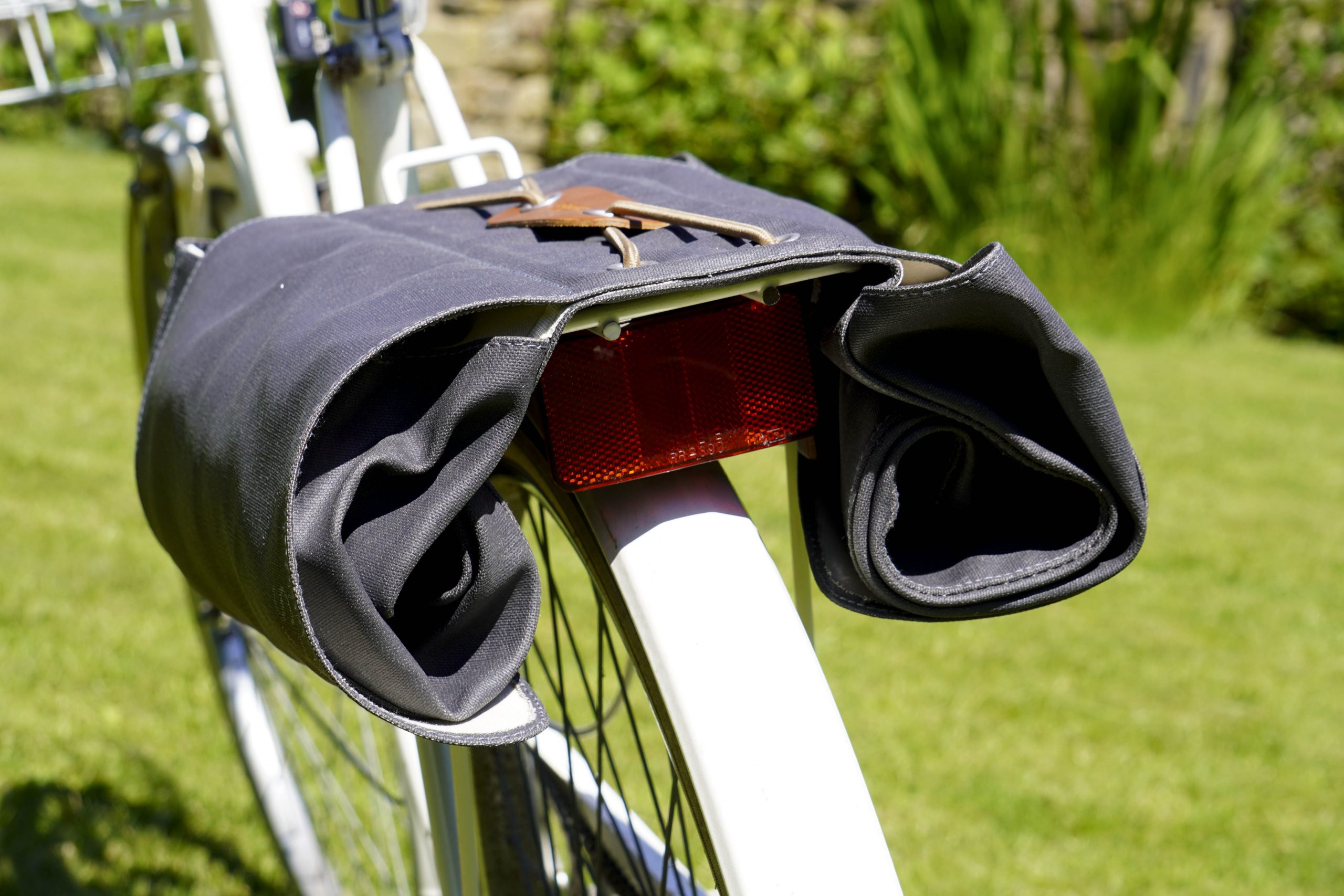 Ready for a big shop! No pub bike is complete without means to transport beer these days, since pubs aren’t actually open. They attached to the rack with four buckles and have a bungee on top for your pineapples and watermelons.