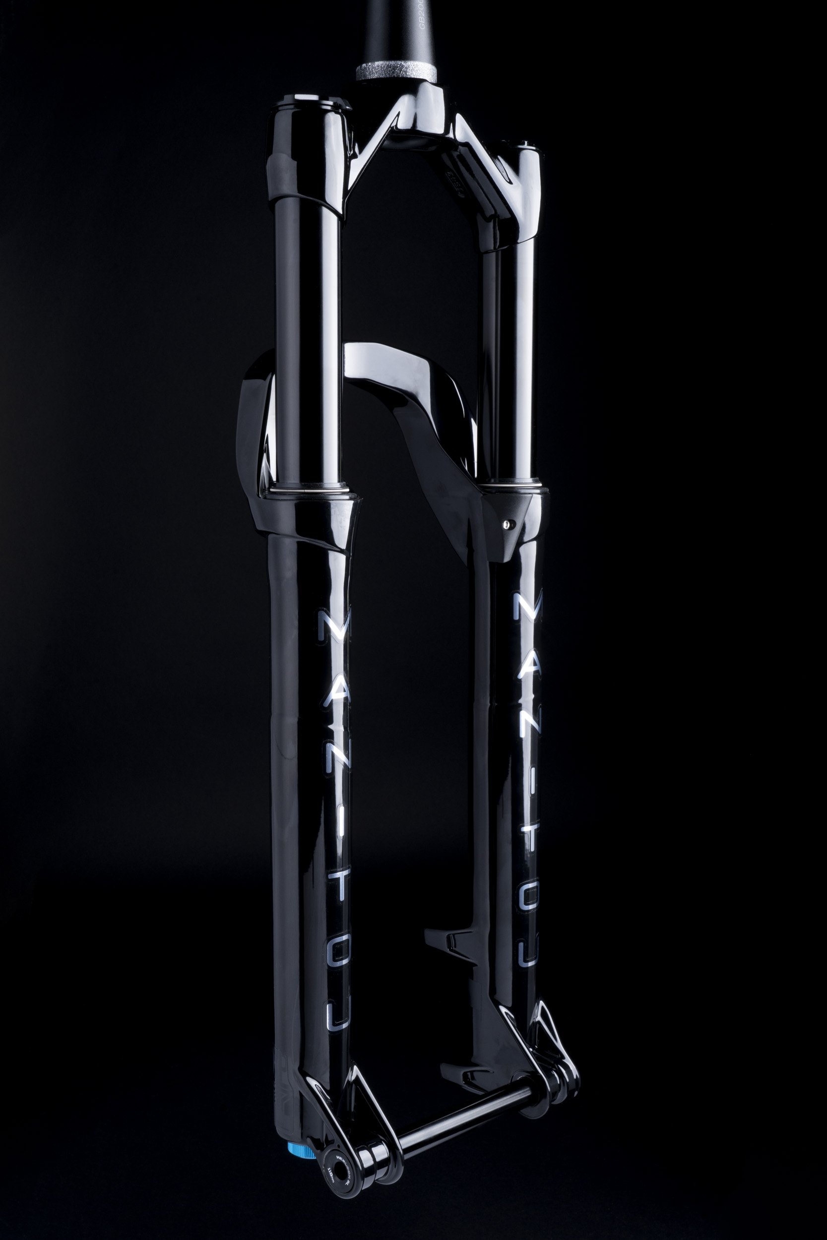 Manitou’s Reverse Arch allows them to use r a shorter arch which they say yields 13% increased stiffness compared to a forward arch fork of the equivalent weight. This means they can use 32mm stanchions to save weight while keeping stiffness closer to that of a larger stanchion fork with a forward facing arch.