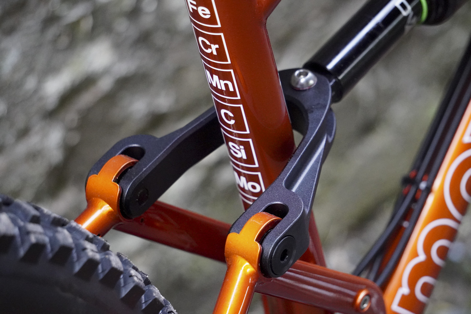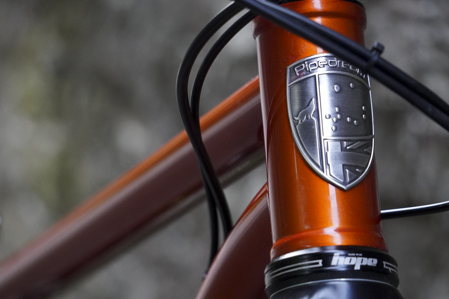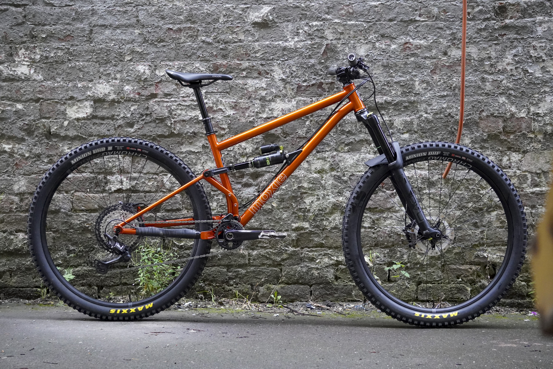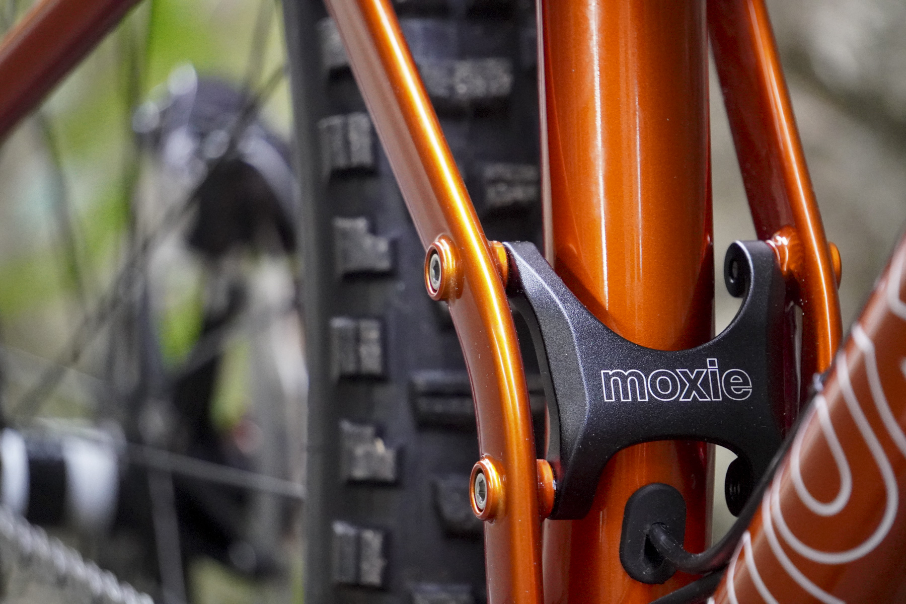 The Full Moxie from Pipedream Cycles can be run as 27.5in, 27.5+, 29in or mullet. Air or coil 140-146.3mm shock, fork compatibility 140mm-160mm, a seat tube designed with dropper posts in mind (OneUp One Eighty in this build), and geometry aimed to give a fun and capable ride whilst still being super playful. A long front end and a slack head angle for confident descents and a steep seat angle to keep you balanced for efficient climbing. Available in Long or Longer sizes and paint options of orange, pink or blue, we’ve got a Long orange built up with DVO suspension, Shimano Deore XT brakes and drivetrain, and a mismatch of components everywhere else.