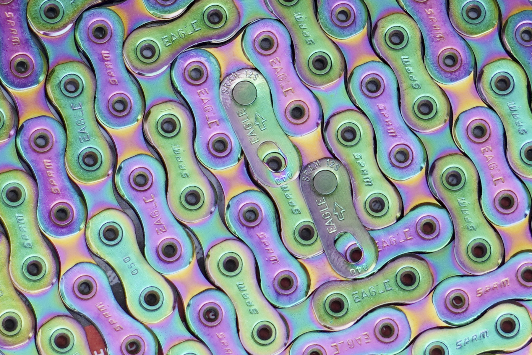 This wonderful rainbow chain from SRAM has 126 links. That’s 126 rainbows to bring a smile to your ride.