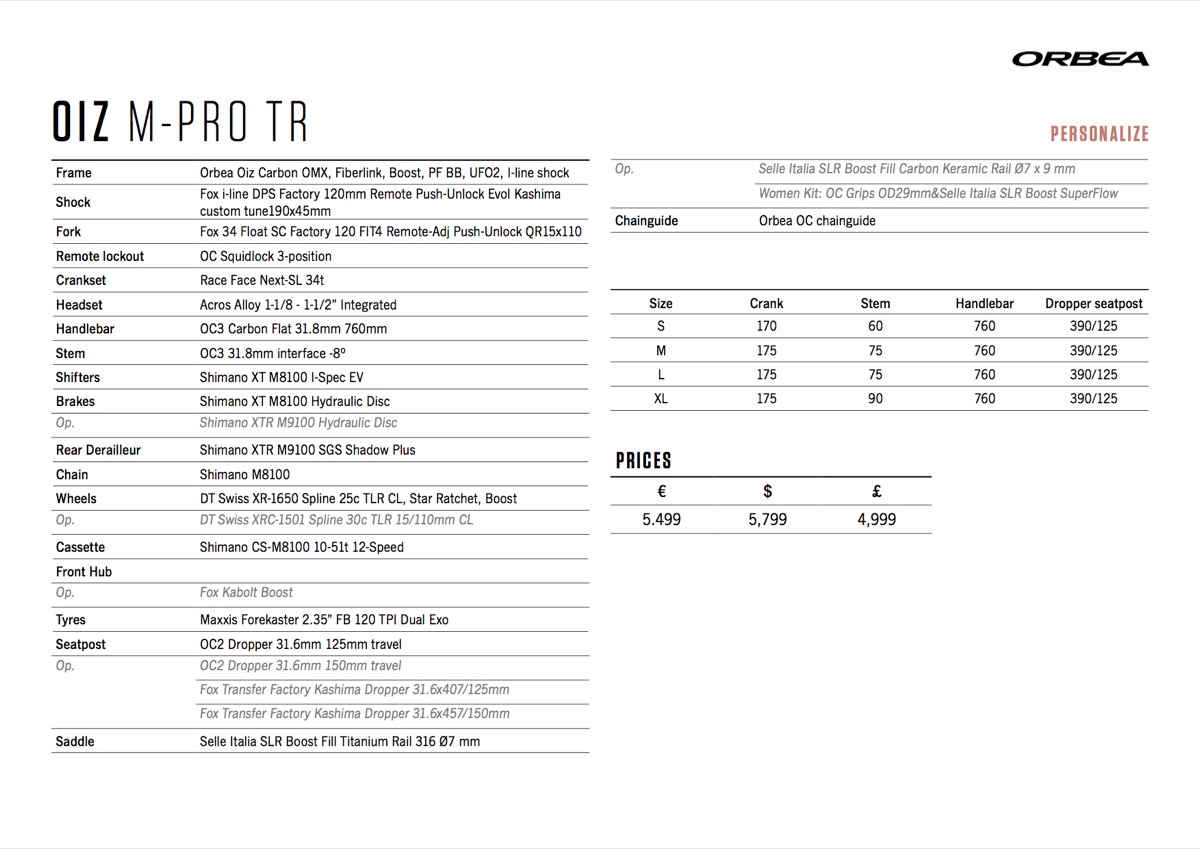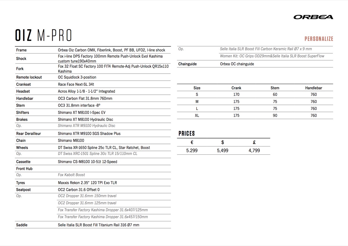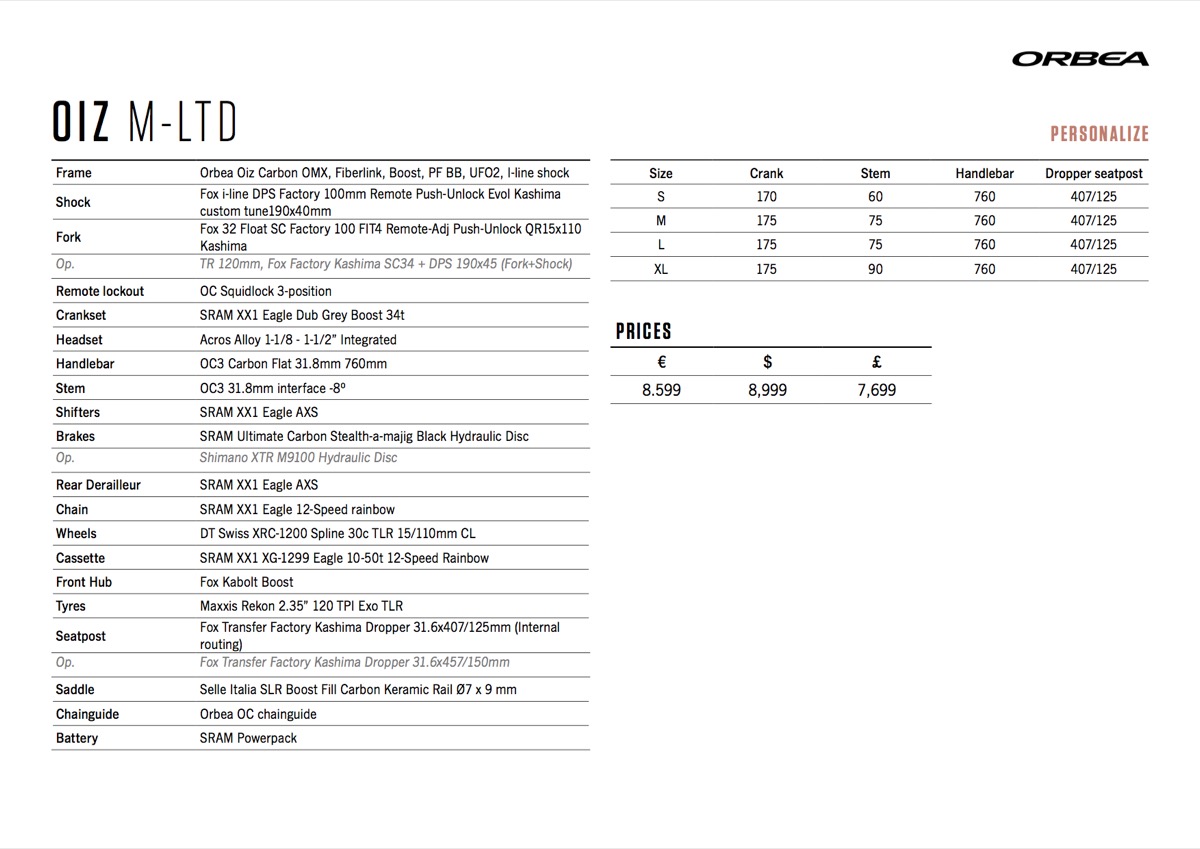 The addition of the OMX carbon means there are now alloy models plus two tiers of carbon to choose from, plus the choice between an XC or TR set up, making 10 bikes off the peg before you’ve got going with colours and MYO pick-n-mix. Not a bike for the indecisive then! If your bank balance helps you choose, the alloy Oiz H30 base model comes in at £2,199, while the all singing all dancing Oiz M LTD will be £7,699. The Oiz M-Pro TR is £4,999, while the H10 TR is £2,699.