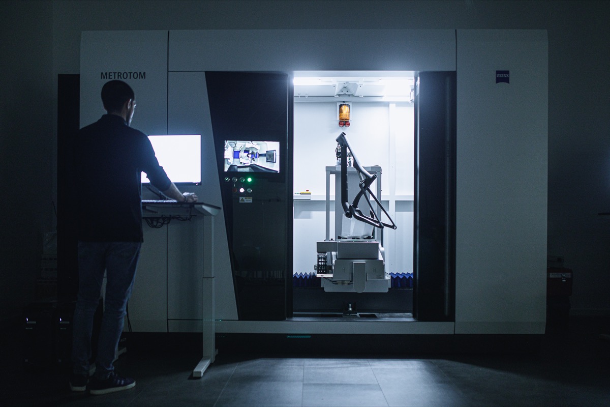 The new OMX carbon uses construction techniques designed to eliminate ripples in the carbon – which cause unnecessary material and therefore weight to be included in the frame. Orbea says ‘Fiber direction and layup are tuned and adjusted with testing prototypes, and hours of premolding specific areas of each production frame before final heating ensure optimal fiber and resin compaction with the smallest amount of carbon. Smooth and even compression of the laminates is the goal; full EPS molds, Polyurethane and Latex inserts are used to eliminate wrinkles and imperfections when the frame is moulded’. This video explains, erm… not a lot. But it makes some cool swirly graphic stuff happen.