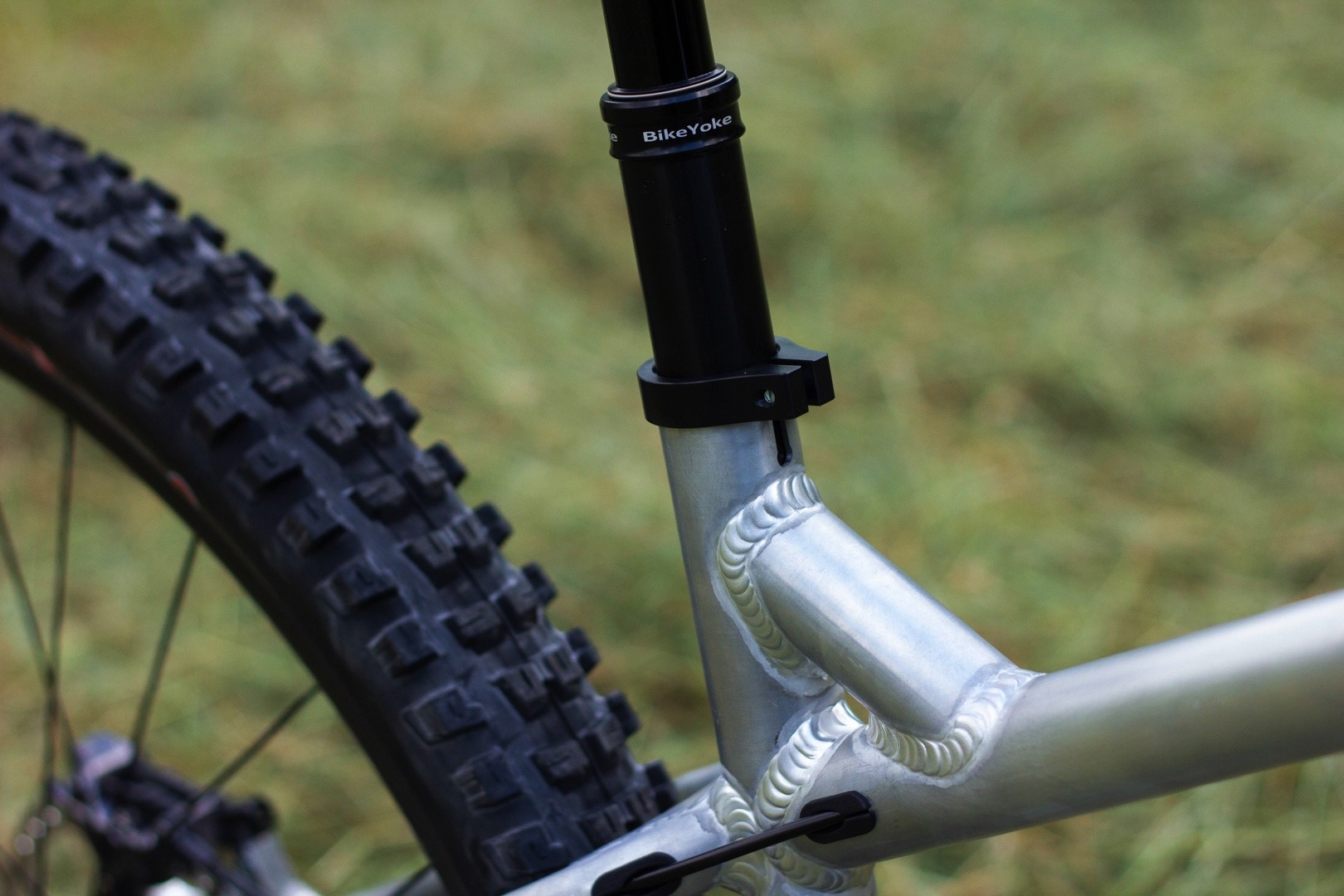The frame is designed around a 140mm travel fork, and the head angle sits at 64 degrees. Slack, steep and short is the design brief they were aiming for, but this should make for a playful ride and respectable wheelbase for downhill stability.