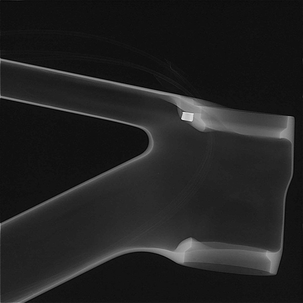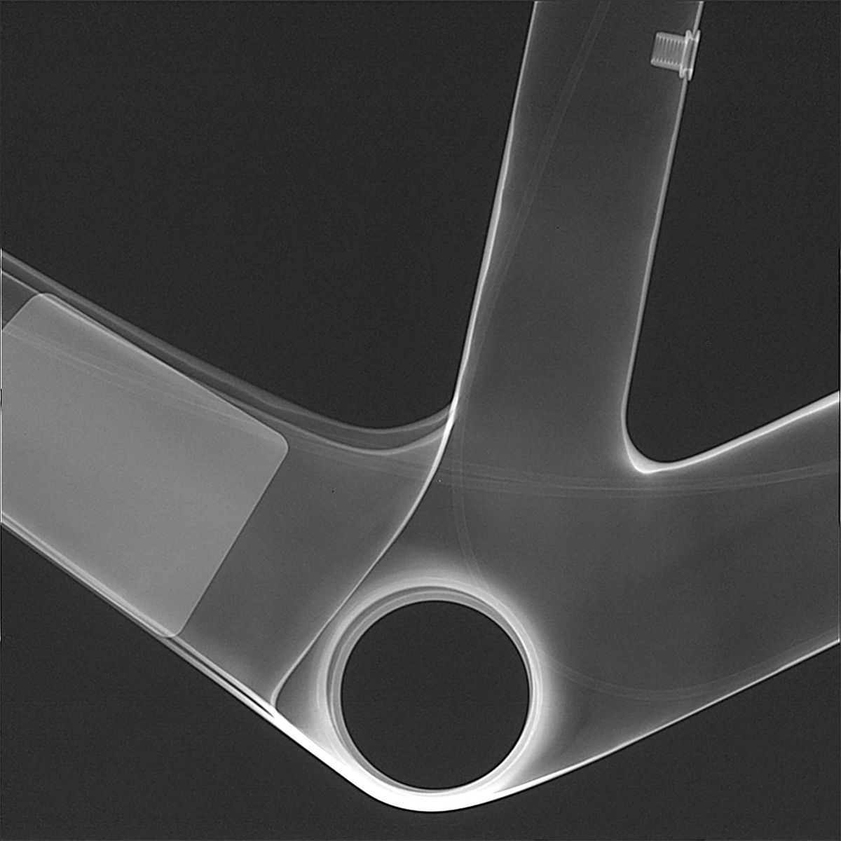 Let’s take a moment to marvel at that integrated front end of the 2021 Canyon Exceed. The CFR and SLX ranges feature a new, full carbon bar/stem combo that also cleverly captures the cables above the head tube to keep things neat and stop cable rubbing. There’s also Canyon’s Impact Protection Unit headset, that features a stop to keep the frame safe if your bars whip round in a crash. At the other end of the top tube, you’ll find a DT Swiss DT232 ‘upsidedown’ dropper post that gives 60mm of binary up/down drop. This seatpost is held in place by a minimalist, hidden seat binder that does up from underneath the top corner of the top tube. After all, with a dropper, you’re not actually going to need to move it that often, eh?