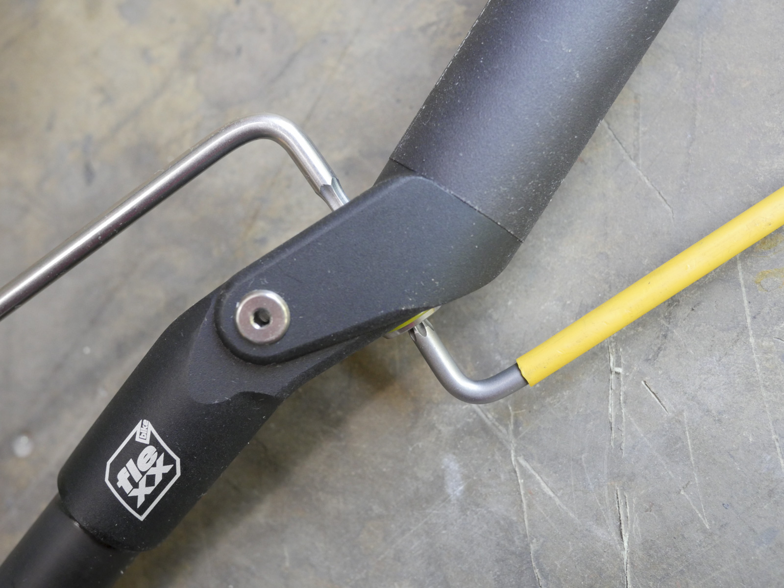 So what is the Fasst Flexx Suspension Handlebar? It’s an 800mm mountain bike handlebar designed to reduce high frequency trail buzz. It features a pair of pivots near the stem that allow the bars to move (near) vertically up and down. Not in an uncontrolled manner, that would be silly. No, they allow the handlebar to move within a set range, with the amount of movement affected by suspension elastomers. These allow a downward movement of barely a couple of millimetres, with the hardest elastomers in place, to perhaps a couple of centimetres with the softest in place. Upward motion is minimal, but it is also governed by a coloured elastomer.
