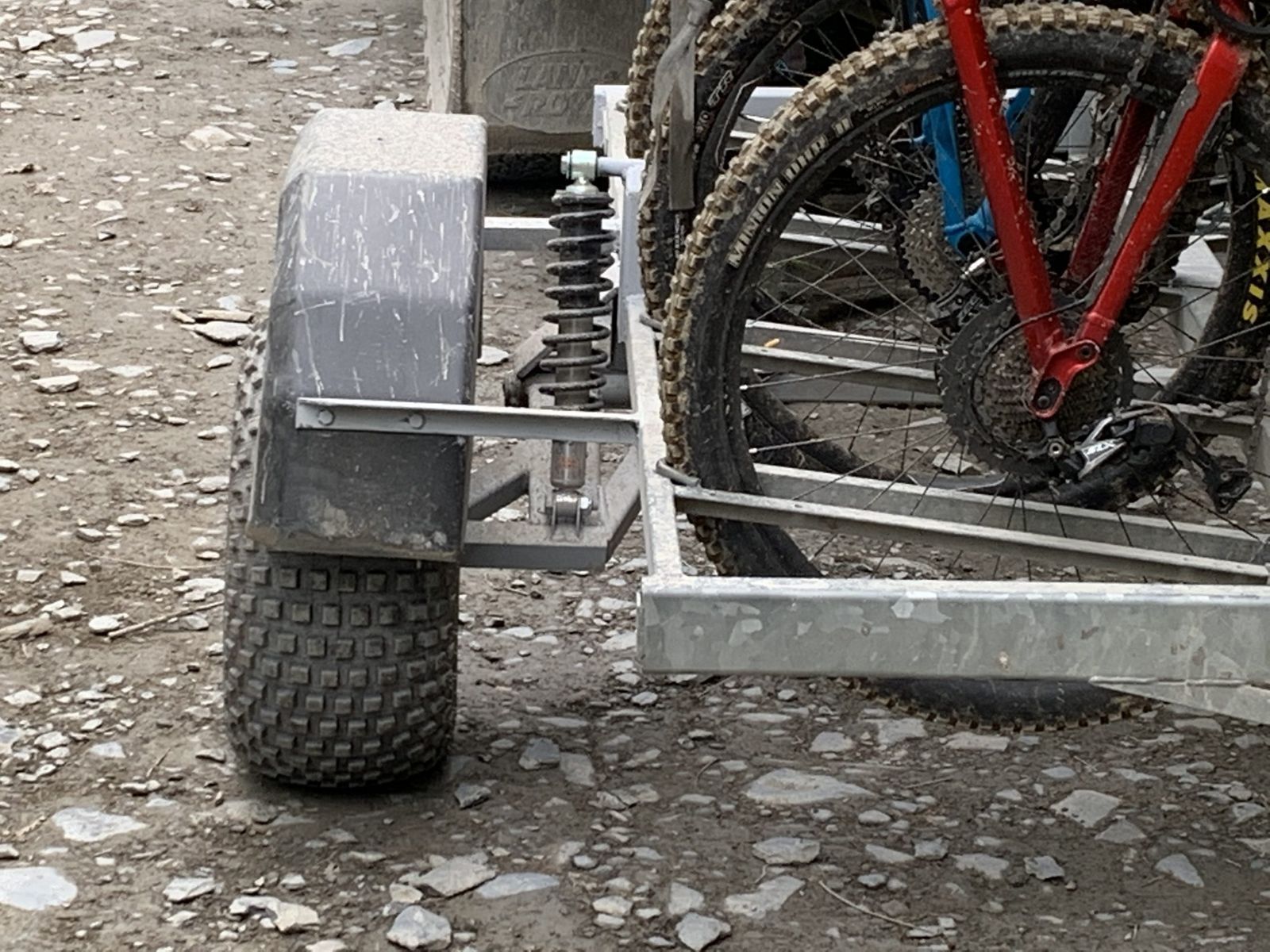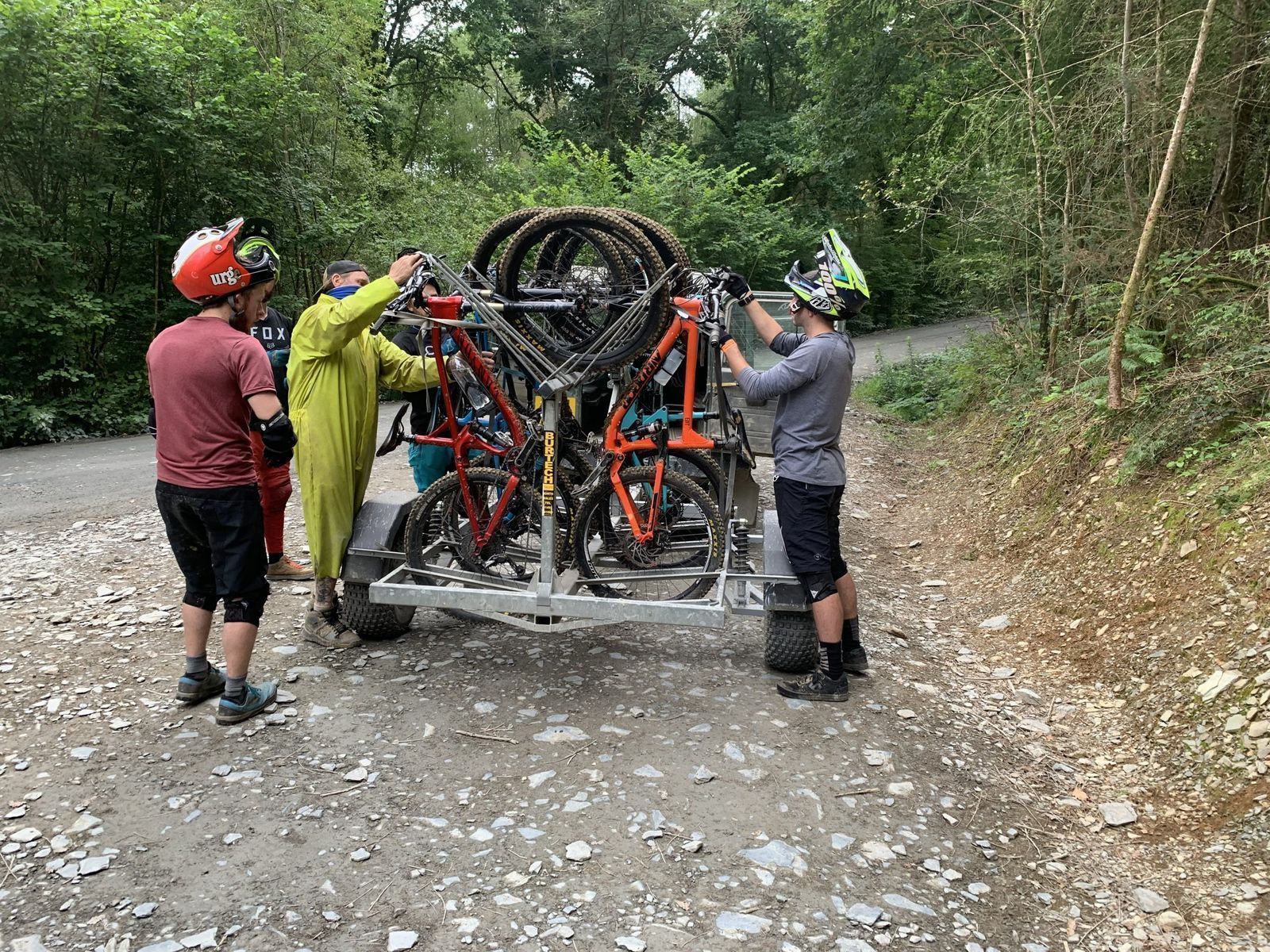 Uplift is via Landrover and trailer. Dan and the team have started to modify the Burtech trailers by adding ATV shocks and tyres, and have found that this makes them survive the punishing haul up and down the track much better. That said, they’re still out welding repairs on a regular basis. Dan also says he needs more Landrovers, and whenever one comes up for sale he’s out there looking at it to see if it can be added to their fleet. With COVID-19 restrictions reducing the number of riders they can handle to just 50, the uplift queue didn’t seem too bad to us, but Dan seemed frustrated by it and it appears a focus of the improvements he wants to make to Dyfi Bike Park. It sounds like in an ideal world he’d like to have a chair lift like bike parks elsewhere in the world, but for now he’s stuck with trailers and Landrovers. There’s no push or ride up option (yet), even for ebike riders.