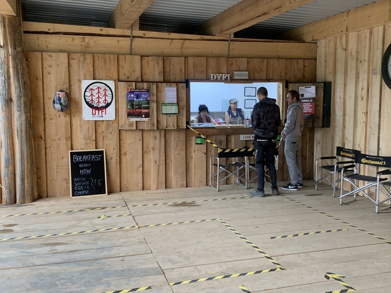 It’s a decent drive into the mountains to get there, but not too far from other ride spots if you want to make a multi-centre trip into Wales. As you head to Dyfi Bike Park, keep your eyes peeled – at the roadside there is what might be the smallest sign ever to point out the whereabouts of the park. The set up is quite basic – we were lucky to have a warm and dry day, and conditions would feel tougher in the wet, not just out on the trail. That said, there is a big open shelter with giant wood burning stove, a small shop, and a cafe serving food that is in part made by Dan’s mum. A bike wash is being built, and for the moment it’s still portaloos in the car park – though these were very clean when we visited.