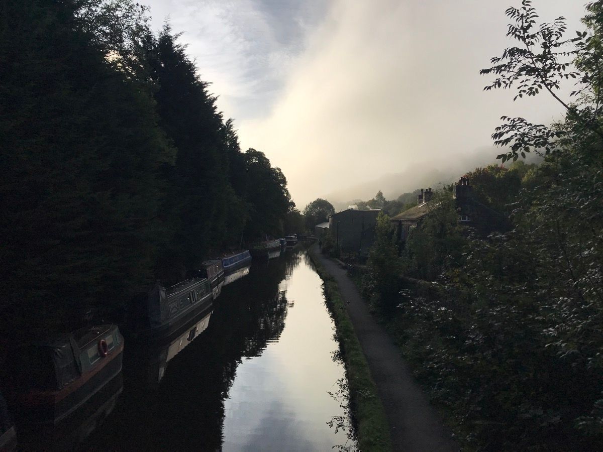 And then I turned off the road to the canal, and for a moment looked up. What had seemed like unpleasant cold and damp air was transformed into shimmering atmospheric mist. Watery sun licked my sullen face and I felt the frown muscles ease. Breathe. Let go a little.