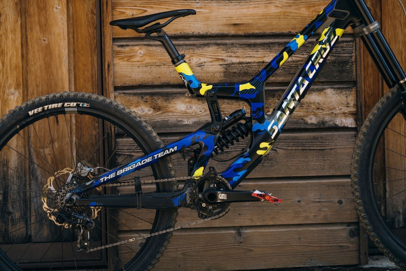This past weekend, Rudy raced at the Les Gets P2V onboard his team Santa Cruz V10 built with a selection of components from The Brigade Team sponsors and partners. The suspension comes from SR Suntour, and as you can see from Rudy’s build he is running a prototype SR Suntour coil shock in his frame.