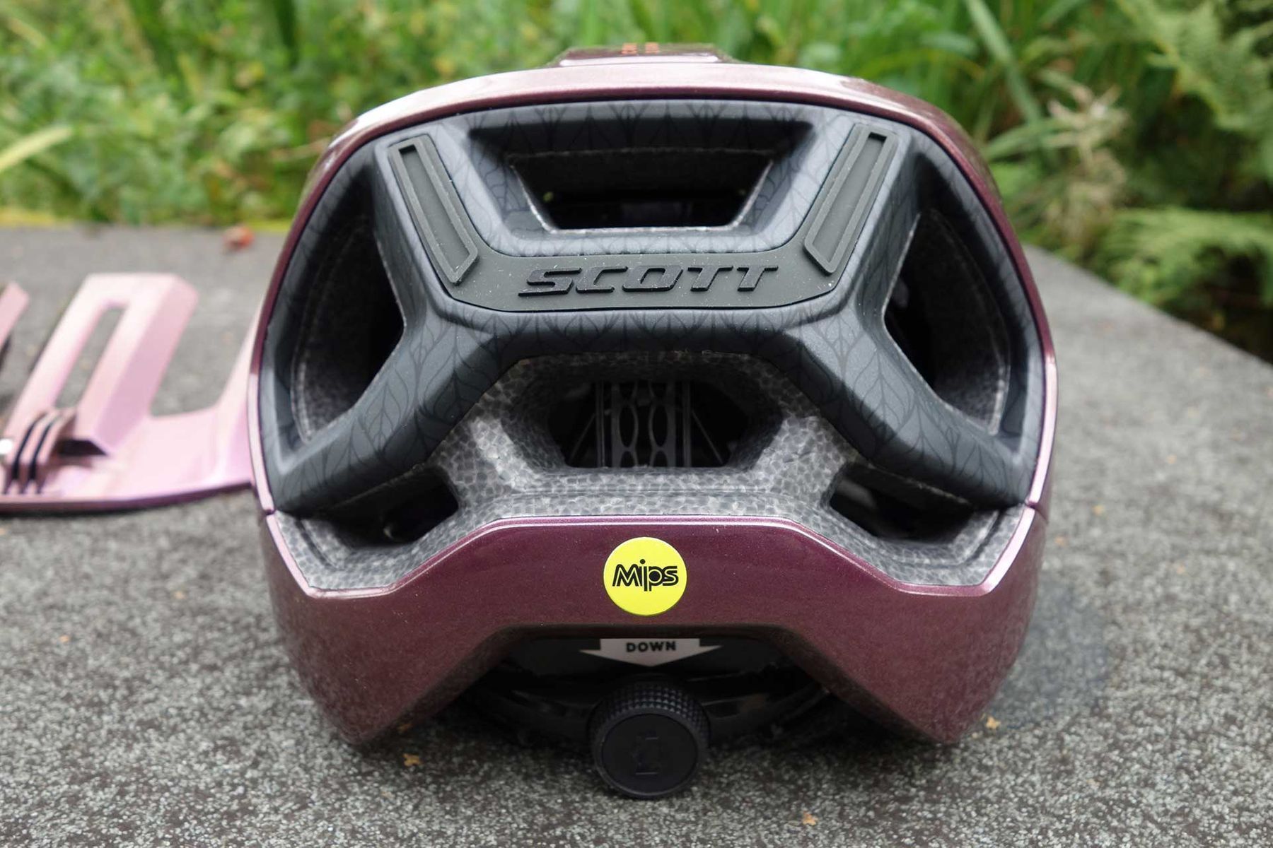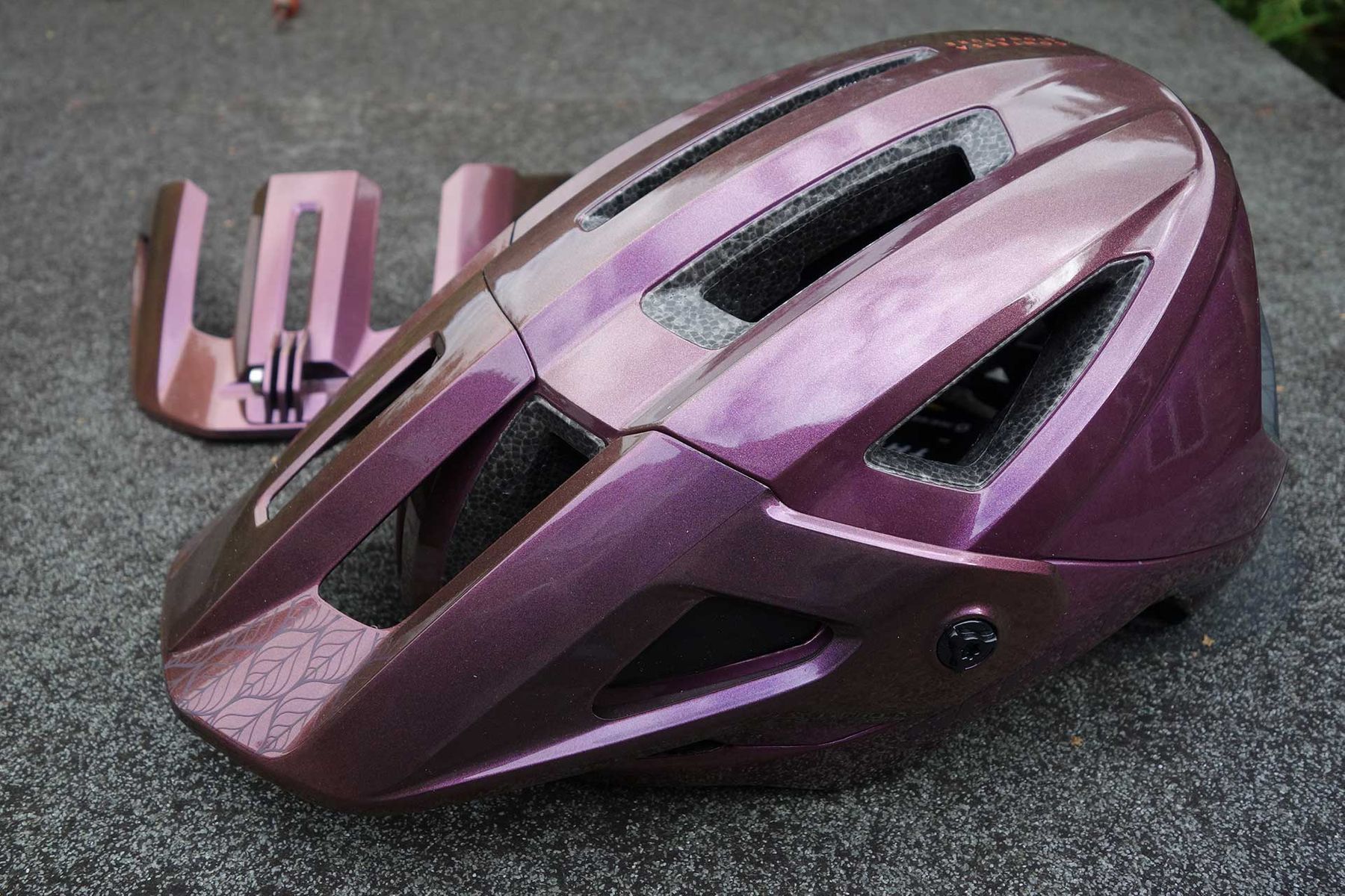 This sassy looking lid is the new Stego from Scott Sports. We’ve actually got the Contessa version, which is the same price and comes in this cool Nitro Purple colour (and five others). The Stego is an enduro/trail helmet that’s goggle friendly, featuring a good low coverage and MIPS inside too. One interesting feature is that all helmets come with both a carry bag and a whole ‘nother second peak, with a moulded in ‘action camera’ (GoPro) mount.