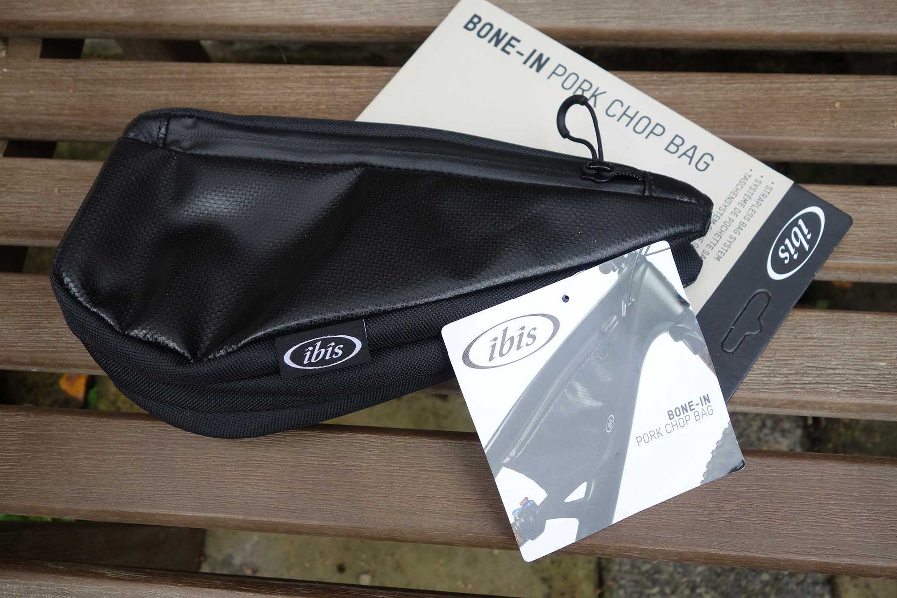 A Pork what? The Ibis (Bone-In) Pork Chop bag is designed to fit behind the headtube of specific Ibis frames and to offer a ballistic nylon storage space for your tools and tube (or a beer and a sandwich, depending on what you’re doing). The ‘bone-in’ bit refers to a plastic clip that braces the back from the shock mount so that it’s a true strap-free addition to your bike while remaining secure. This one fits the RipÂley, RipÂmo, and RipÂmo AF, and there are other versions for the Mojo. Mmm, tasty!