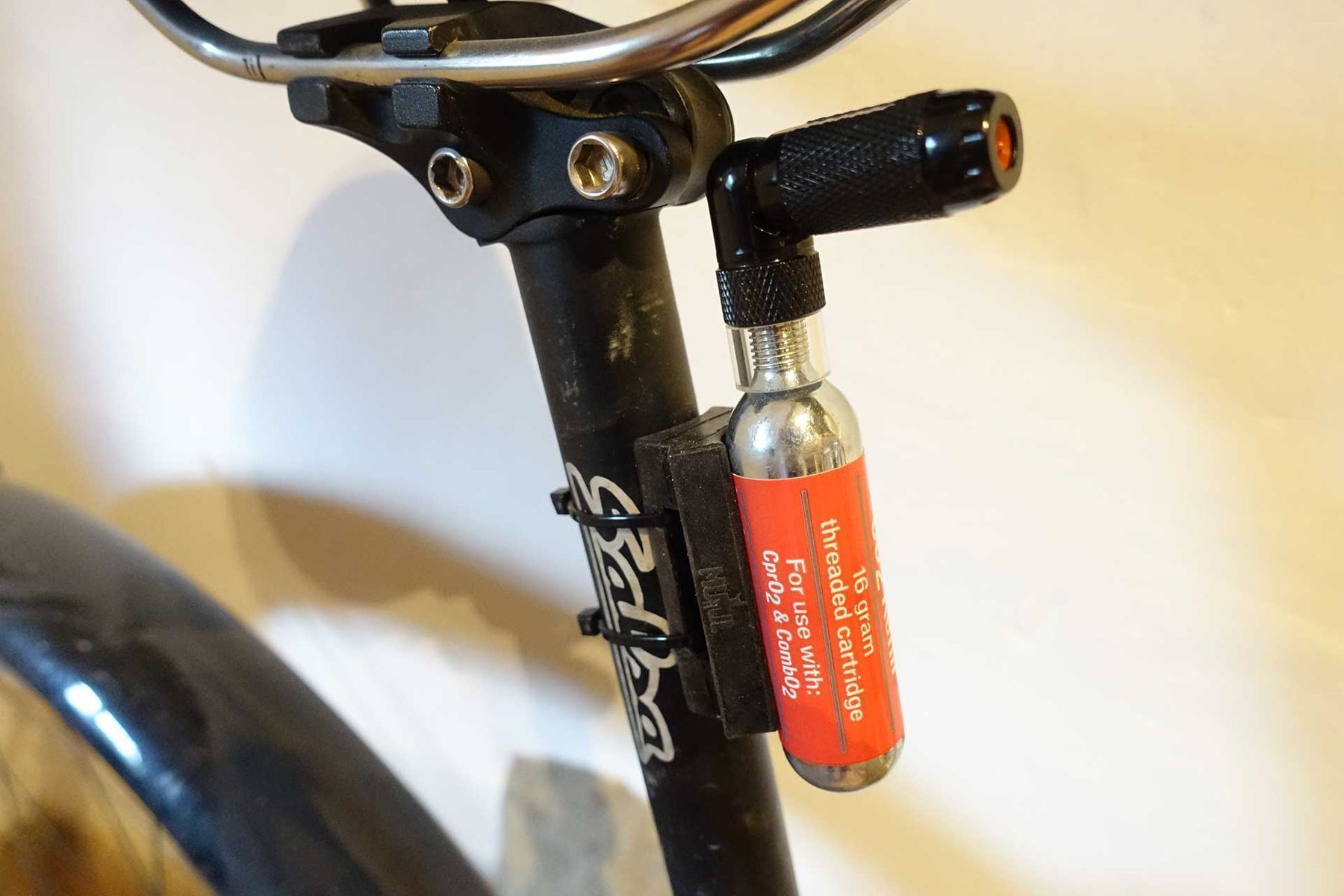 The other item is the Rapid CO2 kit – this features a rubbery mount that makes the most of CO2 canisters all being steel. More super-strong magnets live in the rubber mount, strong enough to hold the canister and nozzle in place without needing an extra strap. There is an extra strap provided though, not to hold the CO2 but to use the mount as the base for keeping your inner tube and levers in place on a downtube, while keeping the CO2 handy too. Clever!