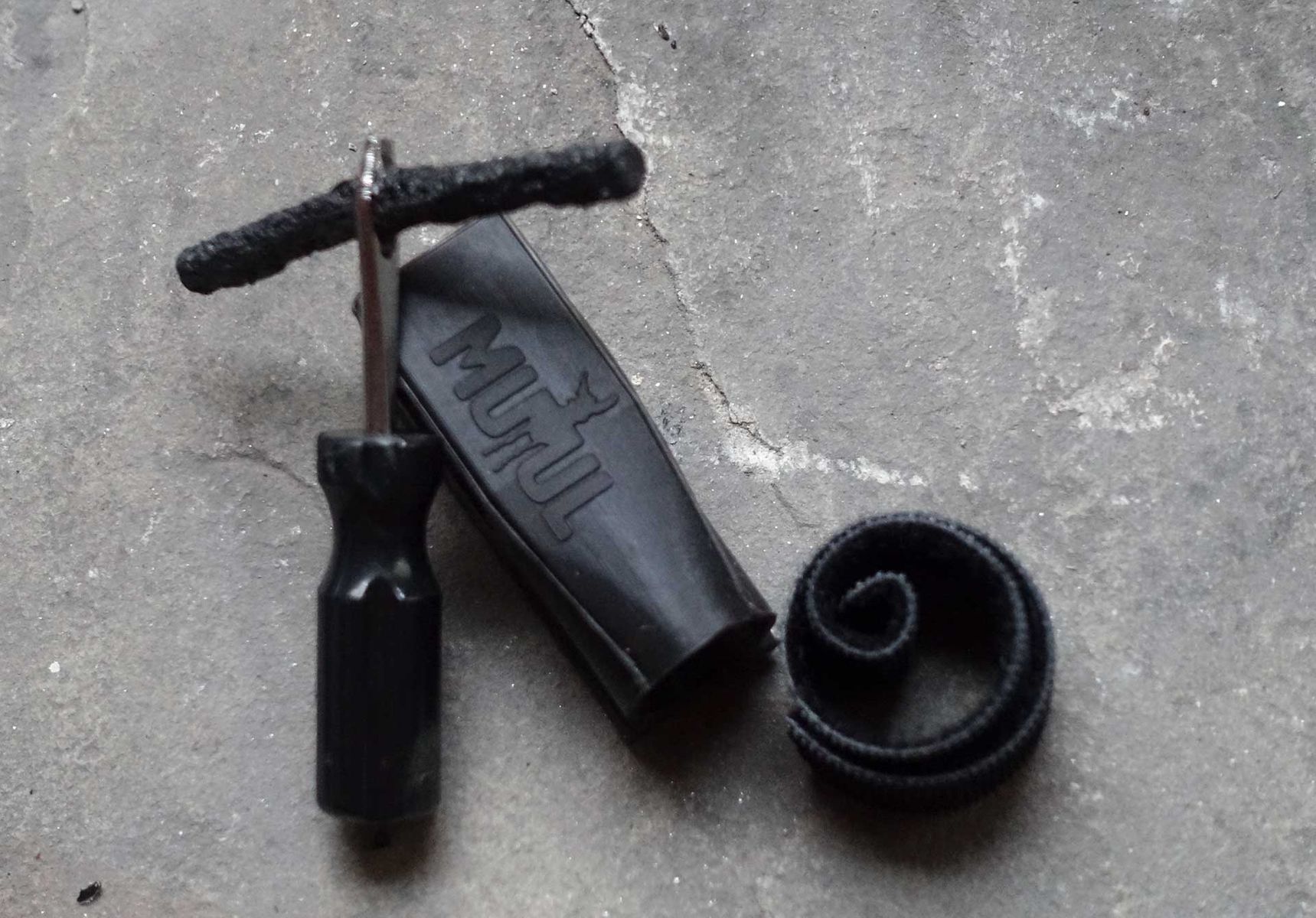 Here are a couple of clever bits and pieces from the MUUL line from Gone Biking Mad. The first is the Quickdraw kit, which is your standard tubeless repair fondue fork, but…. but! it has a clever little rubber home that it lives in, complete with a strong magnet in the end to keep it in place. It comes with a velcro strap to attach to handlebars or top tube so it’s always ready.