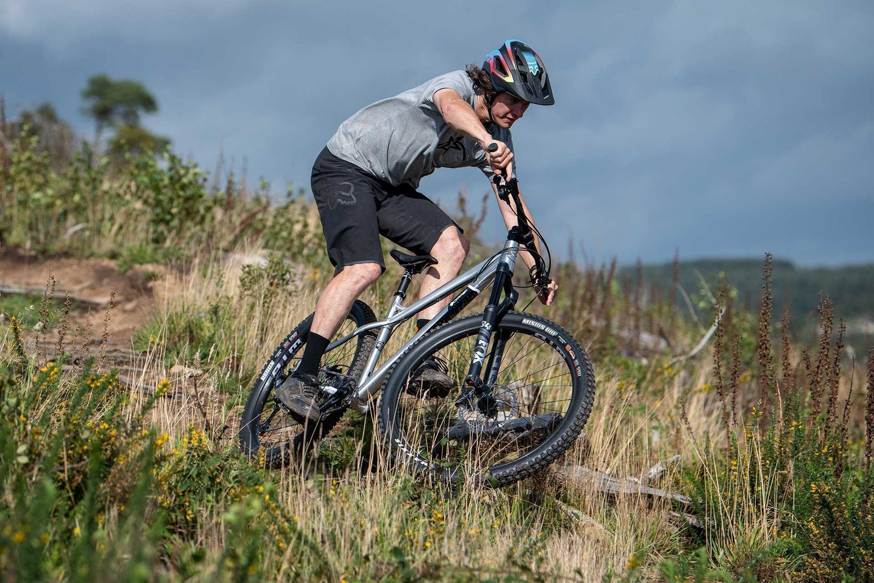 This 140mm travel mixed wheel trail slayer could be your perfect only bike or an ideal N+1. It features a 6061 custom butted aluminium frame, 64.5° head angle, reduced offset fork, 75.5° seat angle, 430mm chain stays and a reach of 480mm (size large). Providing you with the stability to ride in even the toughest of conditions but not being so overkill you couldn’t ride your local loop with a smile on your face. Additional details include a sleek tapered head tube, CNC dropper cable guides, plenty of tyre clearance to accommodate even the wildest of 2.6 tyres and a new seat stay bridge.