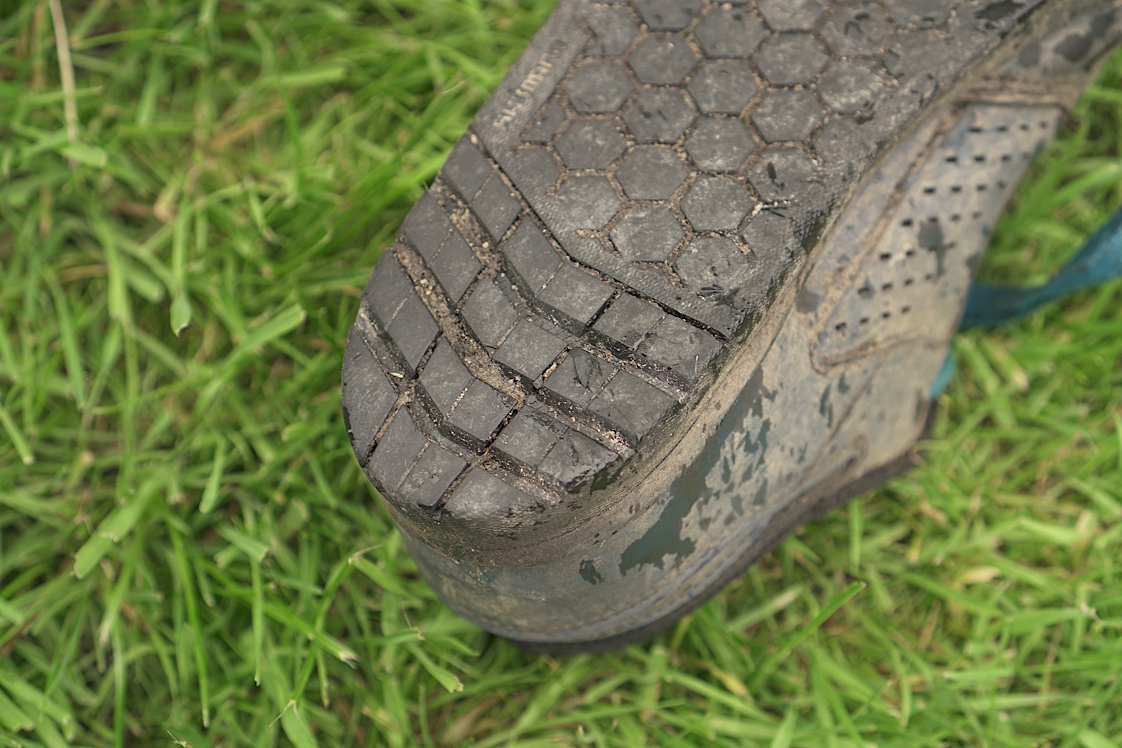 The blue synthetic upper wears very well, much better than some more expensive shoes, and all the stitching is of a high standard that looks just as good today as they did when new. However, a large mesh toe cover does mean that the GR5 get wet even if there’s just a sniff of moisture in the air. The simple tongue design doesn’t feature any gussets so dirt and debris can sneak in, but on the flip side, this makes the GR5 a cool and airy shoe great for summer riding.
