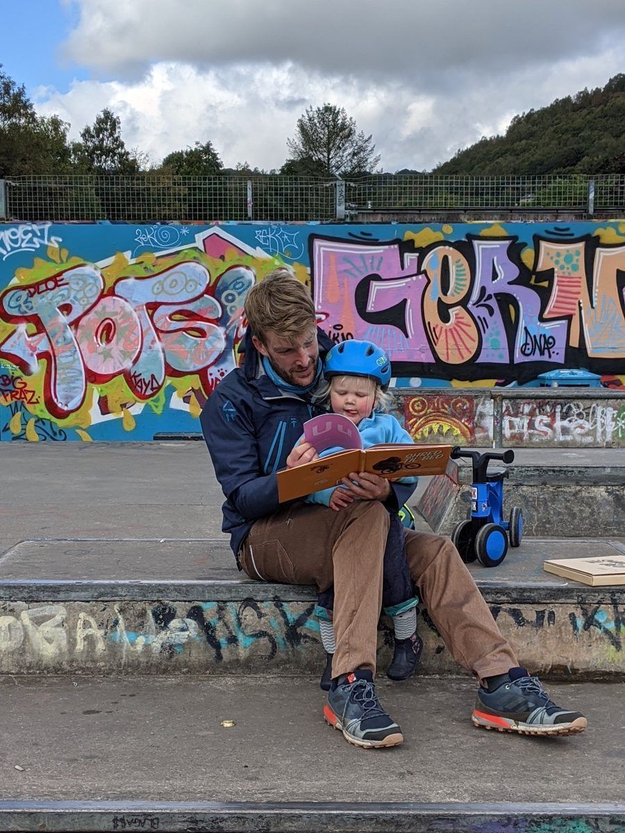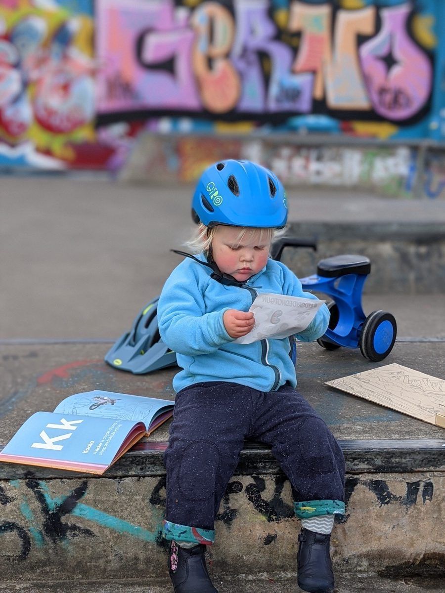 Starting with an injection of cuteness, we have our junior tester on hand to demonstrate the joy of bikes, plus our youngest apprentice showing early promise on the modelling front with a complete coordination of clothing, helmet and bike. If you’re looking for a present for the kids in your life, you could do a lot worse than this mountain bike themed ABC book, which comes in nice packaging to keep it safe until your sticky fingered small person is ready to cover it in mush banana, snot and stickers.