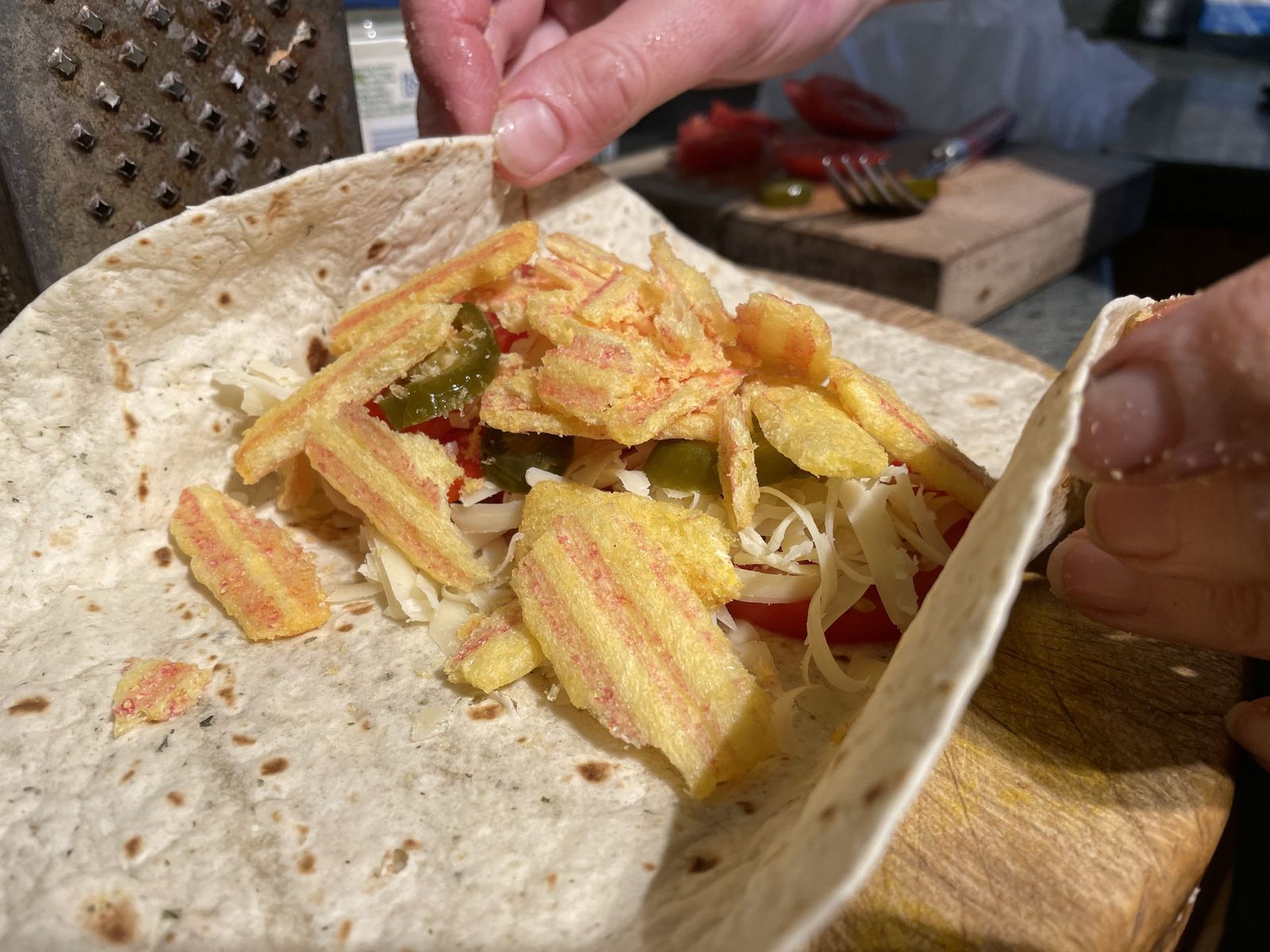 And we’re not even talking real Frazzles, we’re talking Co-Op bacon flavour crunchy slices or something. But who knew that they were veggie and even vegan? Run out of tortilla chips for your burrito? No problem, just crunch a few of these tasty morsels in and sit back and bask in the adulation of your fans.