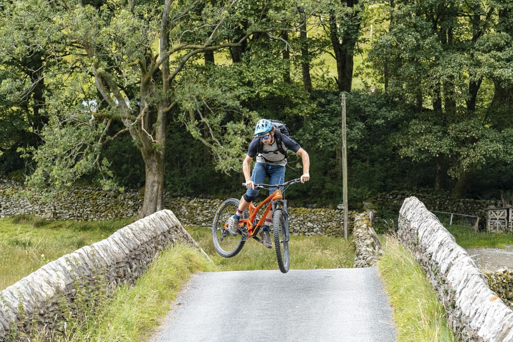 The descent spits us out at the River Sprint and, taking a cue from its name, the others session, throwing some shapes over the bridge for the camera. Me? My legs are still feeling rather heavy so I take the opportunity to rest and focus on taking photos. Nothing to do with my distinct lack of jumping ability, oh no…