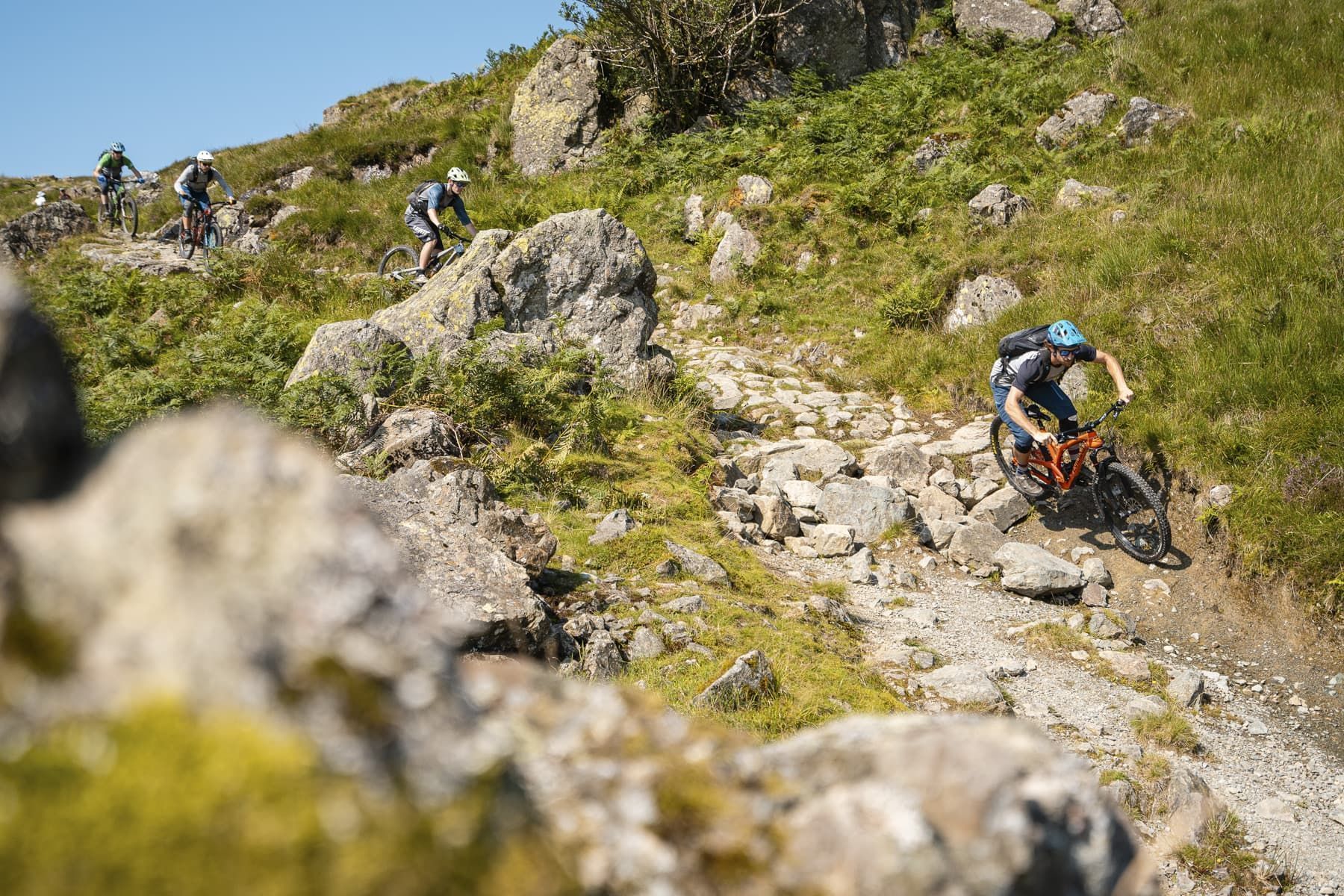The very top of Garburn Pass lulls you into a false sense of security – a relatively broad, flat plateau does very little to hint at what’s in store, and the first few metres of descent give few clues either. It’s essentially just your archetypal Lake District fayre of a wide, rocky trail sunken into the ground. It’s only when you get a few turns in that you start to notice the rocks look chunkier than normal, and before you know it all hell breaks loose. The gradient steepens, and multiple line choices present themselves among baby head boulders that need little encouragement to break free. Pick a line and you’re stuck with it, only to realise your error immediately and falsely believe the one over there looks much, much nicer.