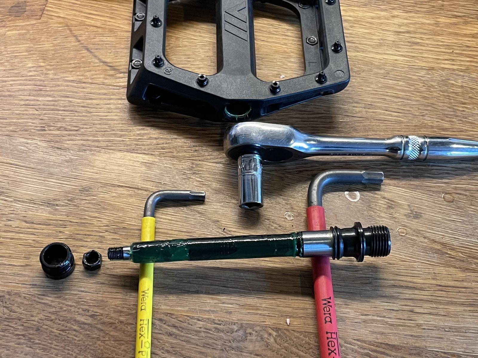 Getting the axle out took me less than a minute. Off with the aluminium 6mm cap and then in with the socket to unfasten the bolt. The cavity is plenty wide enough and you don’t need some rare skinny socket to get it off. It’s a locking bolt so there’s no losing little washers. The insides of my test pair were exceptionally well greased. I have no doubt that maintenance will be a quick and easy job down the line.