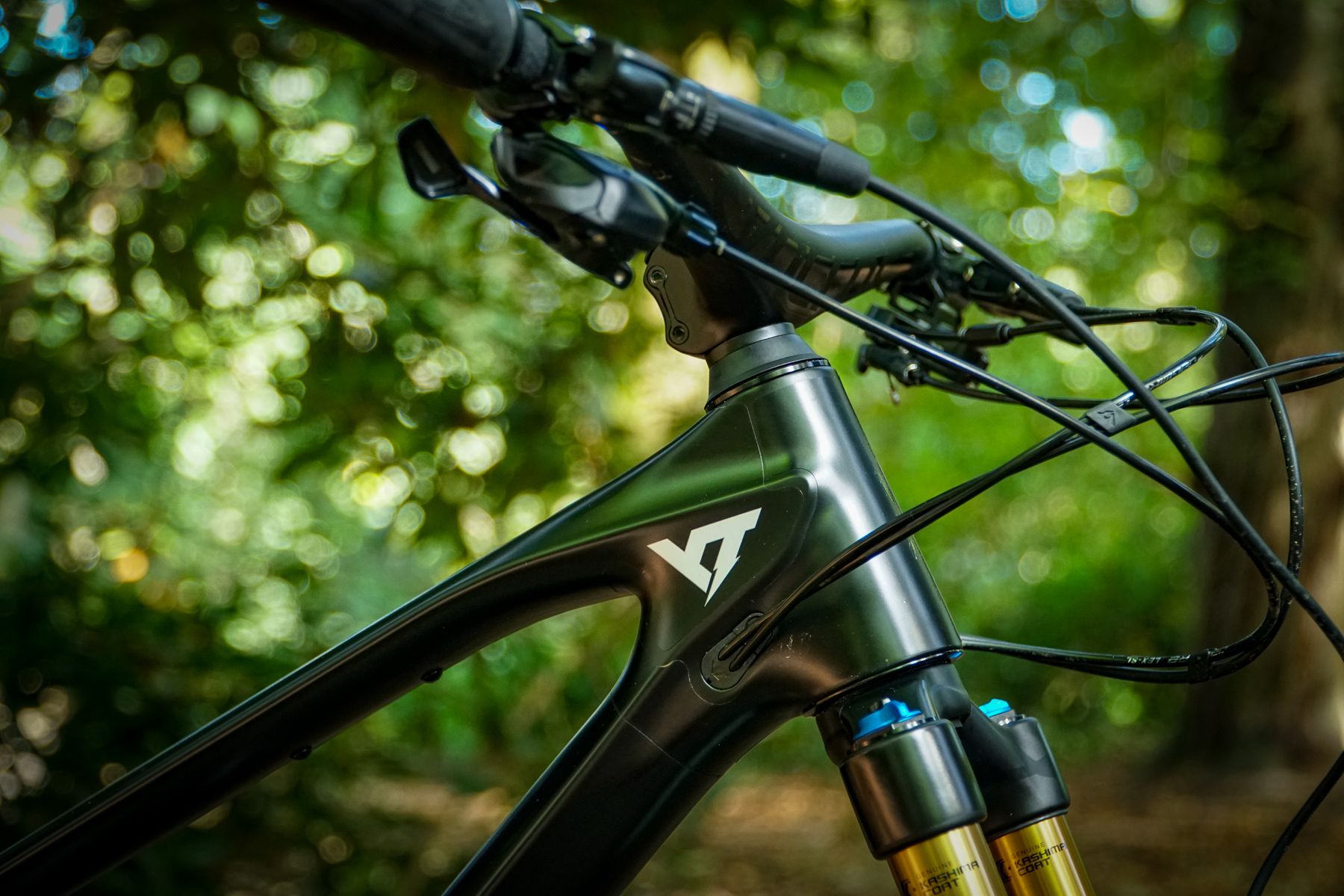 Andi says: Have you tried buying a bike over the past few months? Not easy is it? Well if you’re in the market for a short travel trail bike that can hack the downhills as well as the ups might I recommend the YT Izzo Pro Race? It’s the only model that YT currently has in stock, but that’s OK because it’s an amazing bike with a killer spec. I picked up the Izzo after testing one earlier in the year, my bike is a size large (I tested the Medium) and it’s just as easy on the ups and fast on the downs as I remember. Out of the box the Pro Race is fitted with a pair of DT Swiss XMC 1200 carbon wheels, a Fox 34 factory fork, Float DPS Factory rear shock, Fox Transfer post and SRAM X01 shifting. I’ve swapped a few parts out on mine switching the front Maxxis Forecaster tyre to a Magic Mary and the RaceFace bar and stem combo to a Syncros Hixon. I also replaced the SRAM Twistloc rear shock lockout remote to a Bontrager DropLoc remote.
