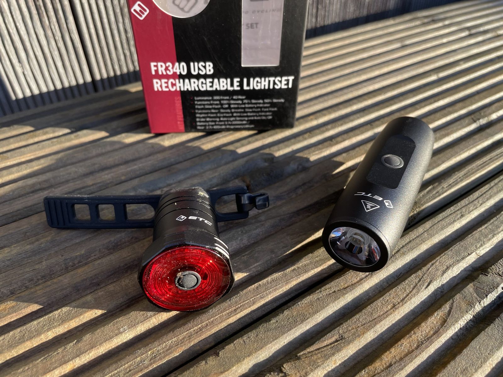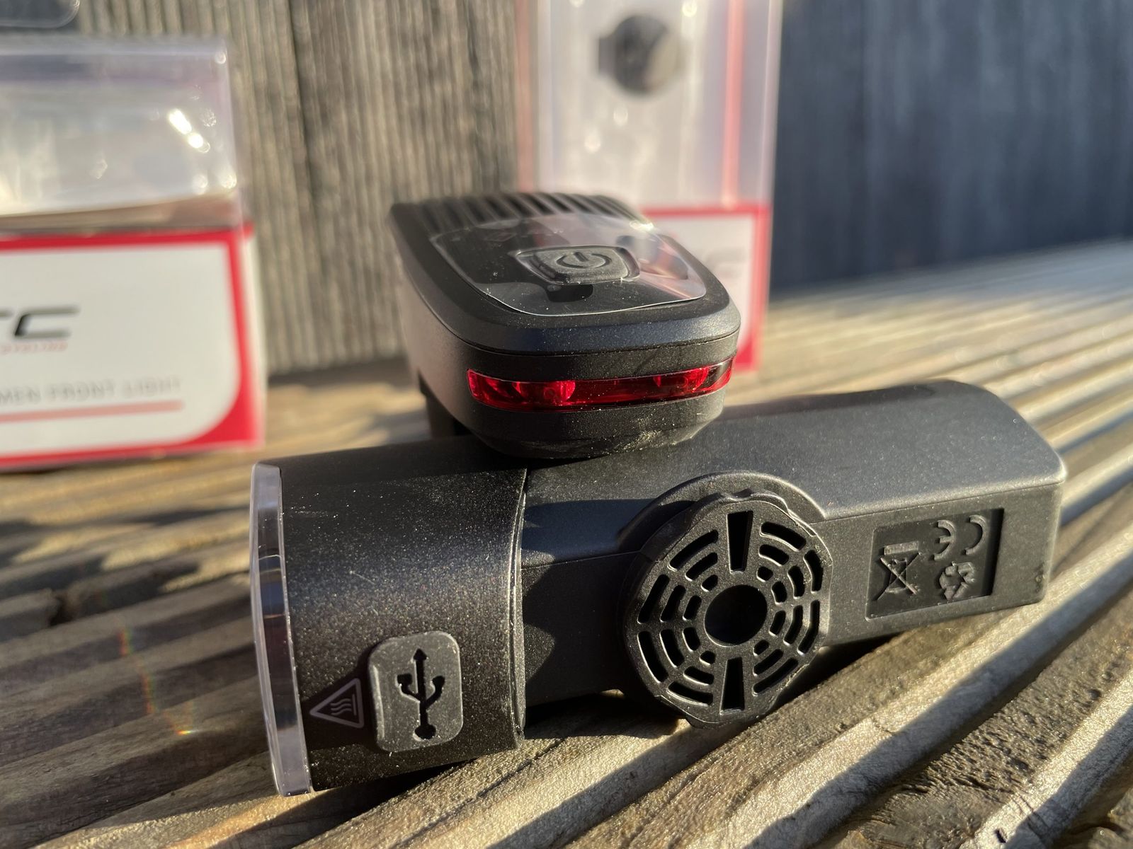 This is a commuter style light set with 300 lumen front light and 40 lumen rear that are waterproof to IPX5 (front) and IPX6 (rear). The rear light has an auto or manual function. If you select ‘auto’, once you’ve screwed the metal fitting with rubber O-ring into the mount, you shouldn’t need to open it up again until you’re home in the warm and dry – it’ll just turn off when it sense you’ve stopped moving at a cafe stop. There’s also a braking function and auto light sensing.