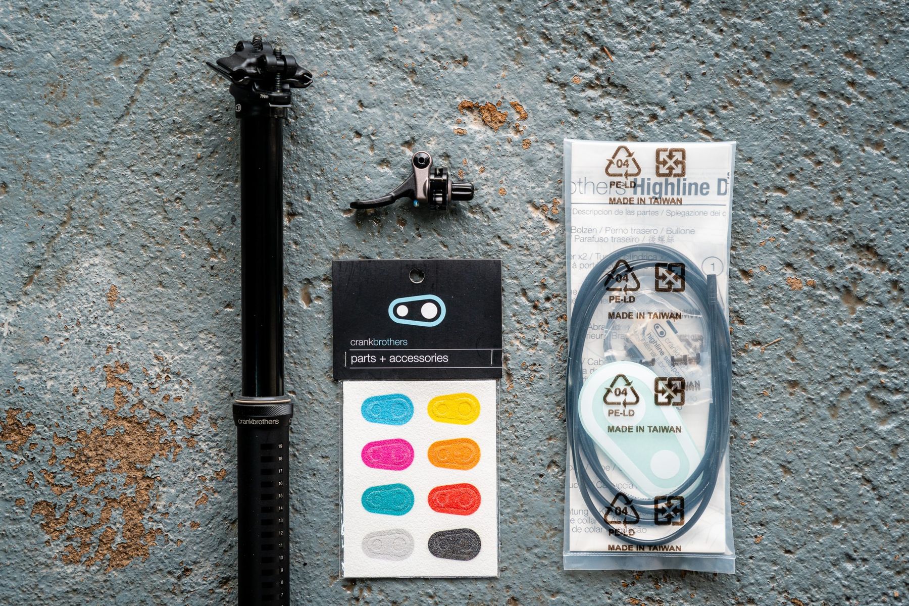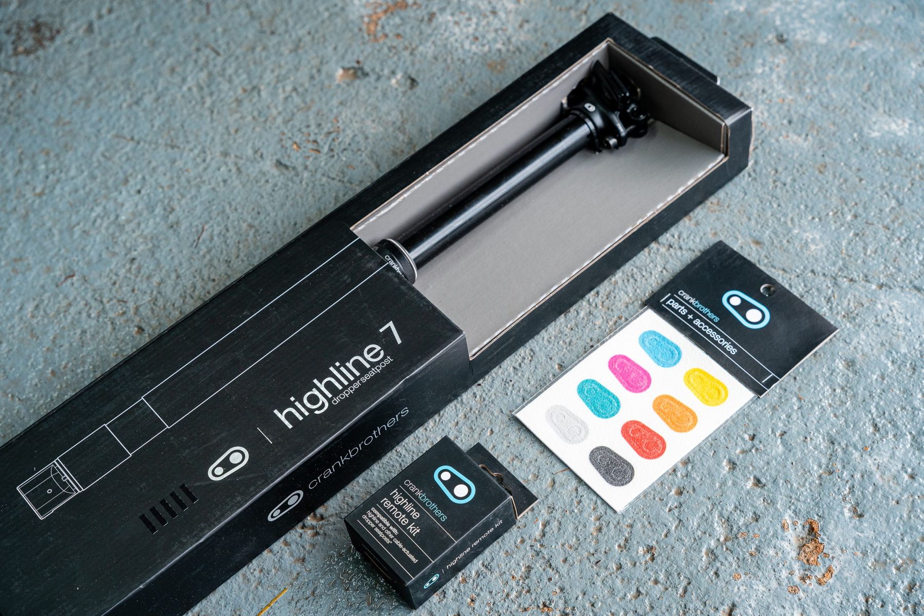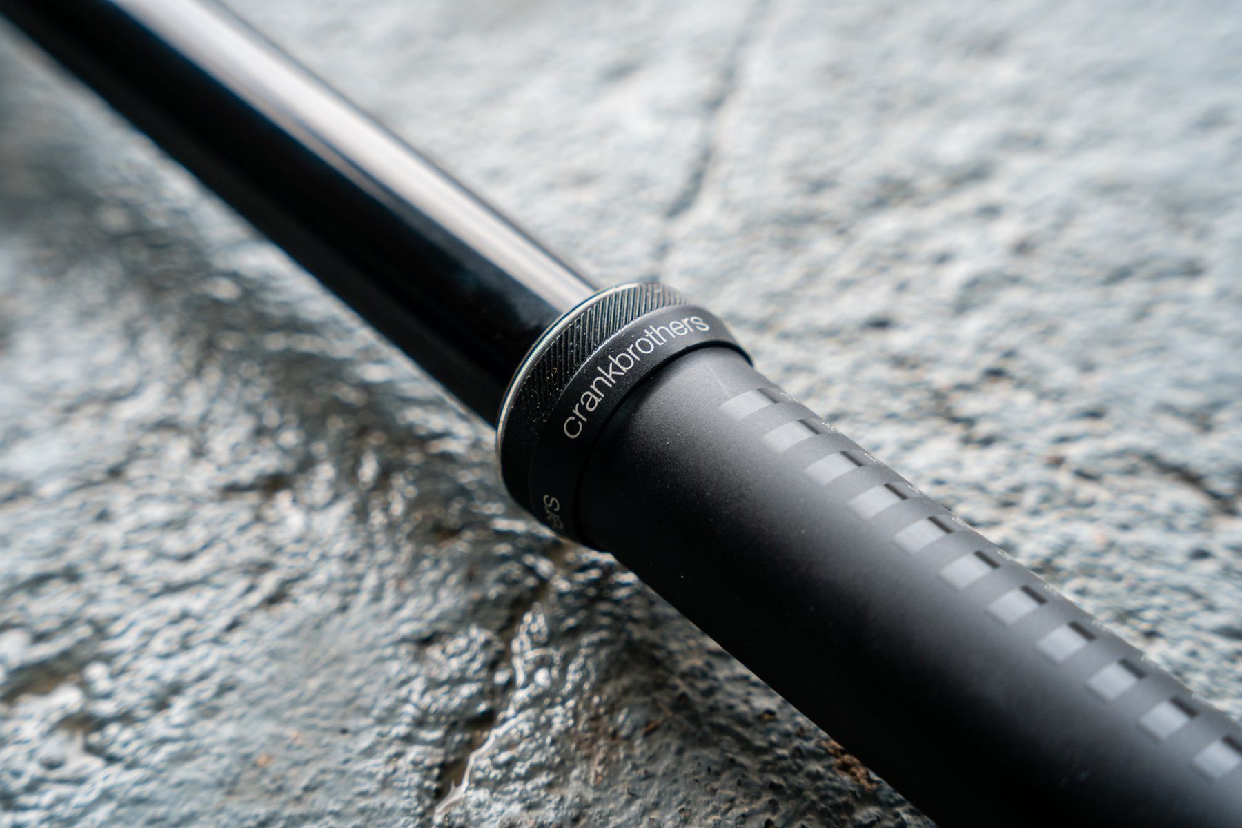 This is the new Highline 7 dropper post from Crankbrothers, in its 170mm option. It’s also available in 100, 125 and 150mm and 30.9 or 31.6mm diameter. This latest model has a shorter insertion length to fit more bikes and a hydraulic IFP cartridge, and it’s apparently been designed to be super reliable. The remote is sold separately, so order that too if you want it.