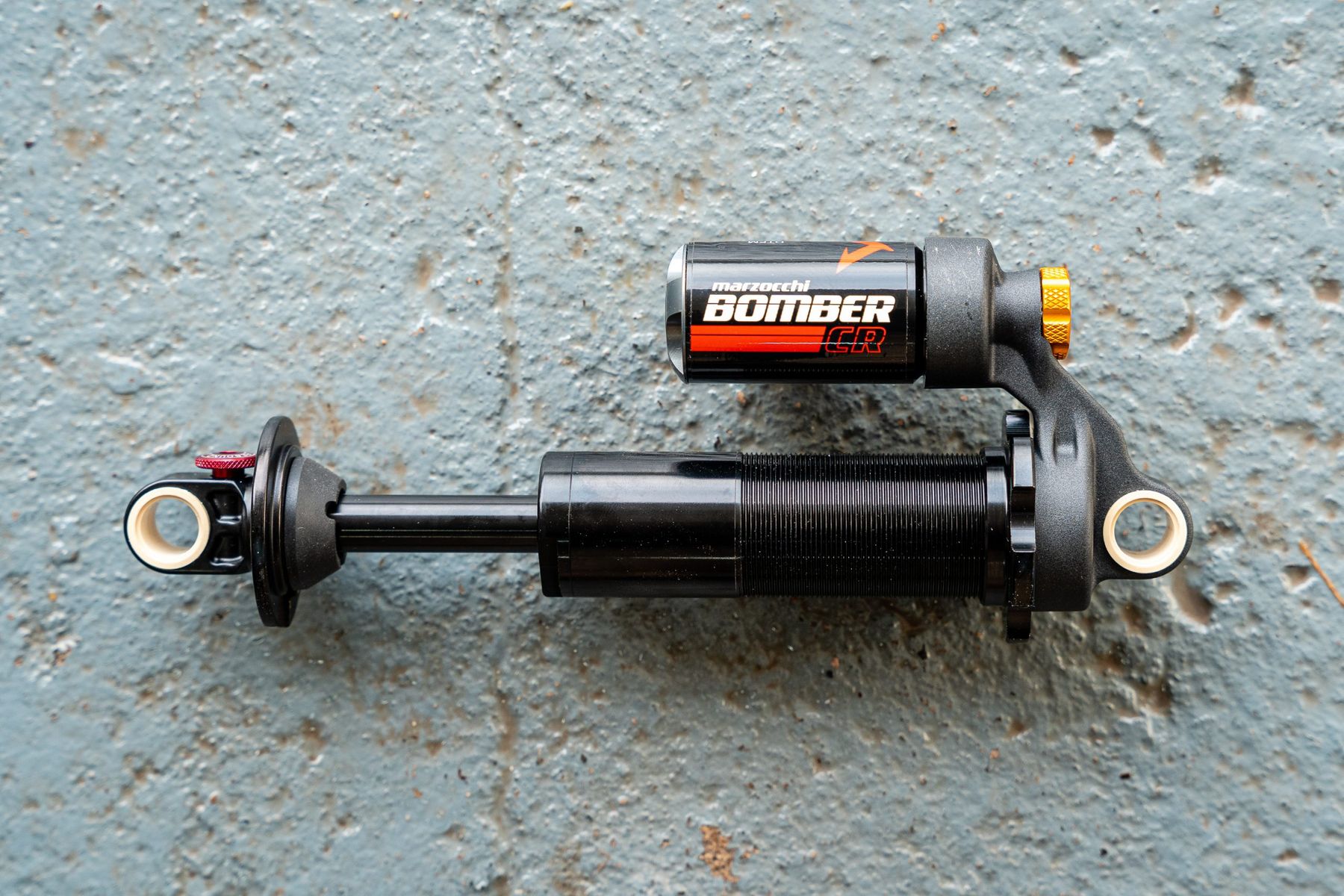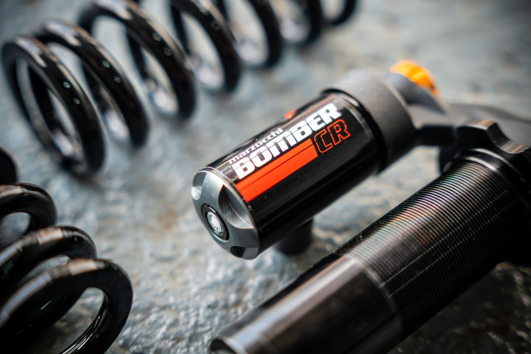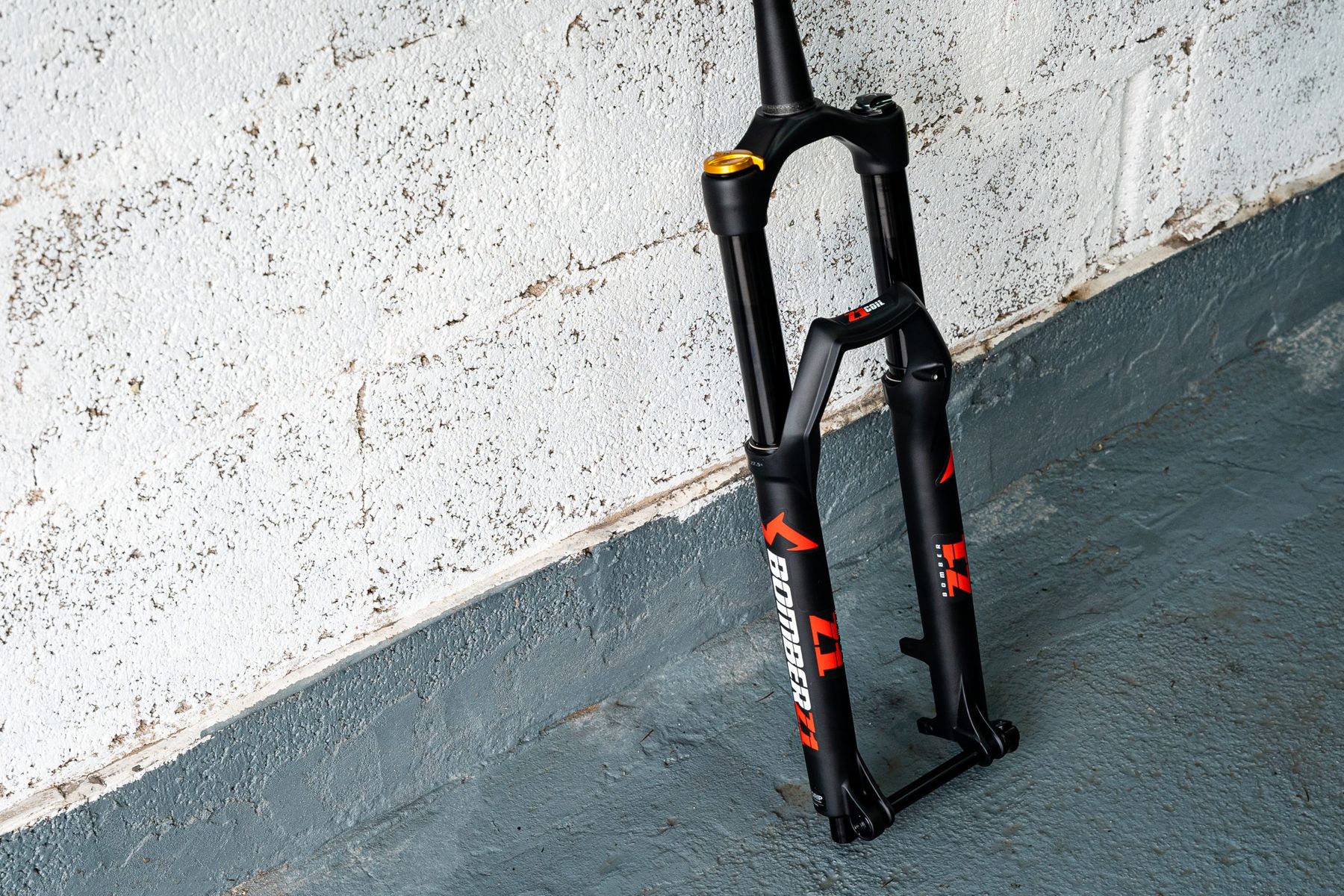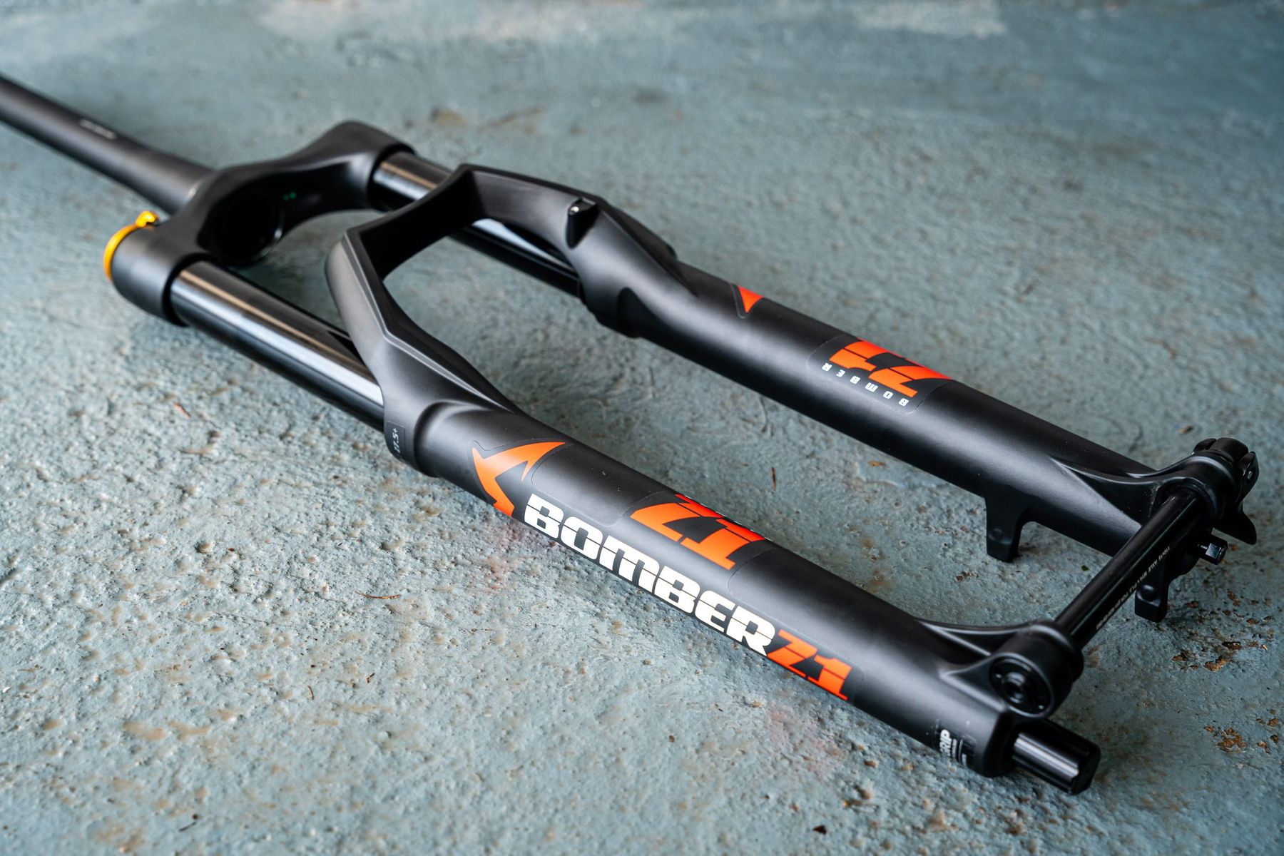 Whoop! The final pieces in the jigsaw for James Vincent’s build project have arrived. Bombers. Of course – post your Forum memes and cliches below. These Bombers have 36mm stanchions and can be set at 150, 160, 170 or 180mm travel. You can fit 27.5 or 29” wheels, which gives a rake of 37mm (27.5) or 44mm (29). With four spring rate options, we have medium installed here, and we’ve got the stealthy matt black rather than the louder gloss red. Weight is 2,525g, about the equivalent to two and a half bags of frozen sausages.